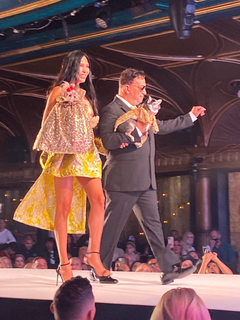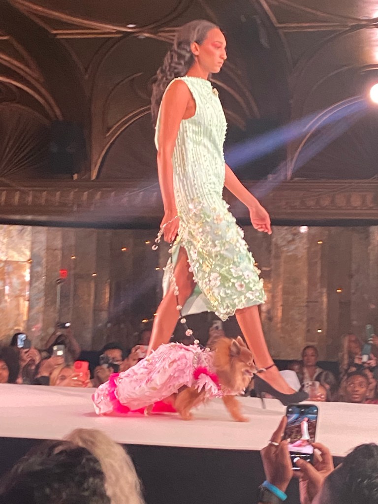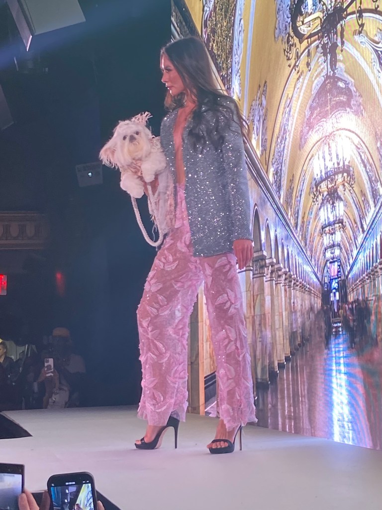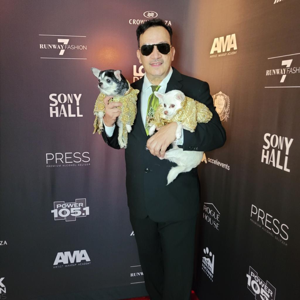 Anthony Rubio’s NYC SS2022 collection is made up of bright colors, festivities, and joy, designs celebrating the opulence for women, men, and their dogs which are the centerpiece for Anthony Rubio’s pieces, Anthony uses luxurious fabrics such as brocades and sequins in gowns along with high and low style designs.