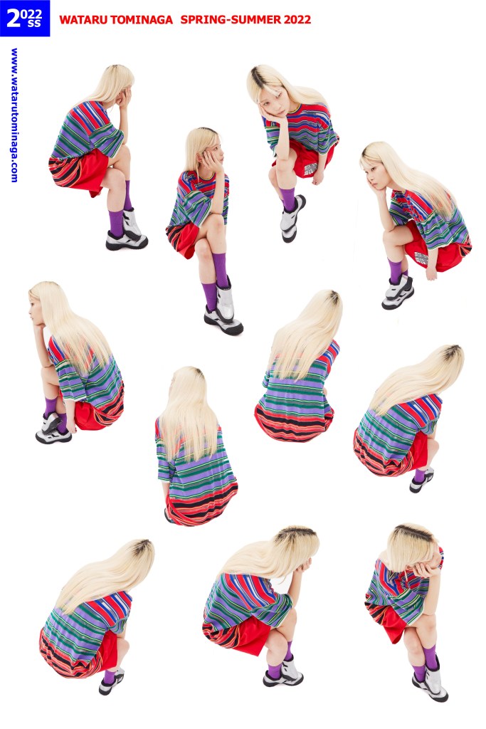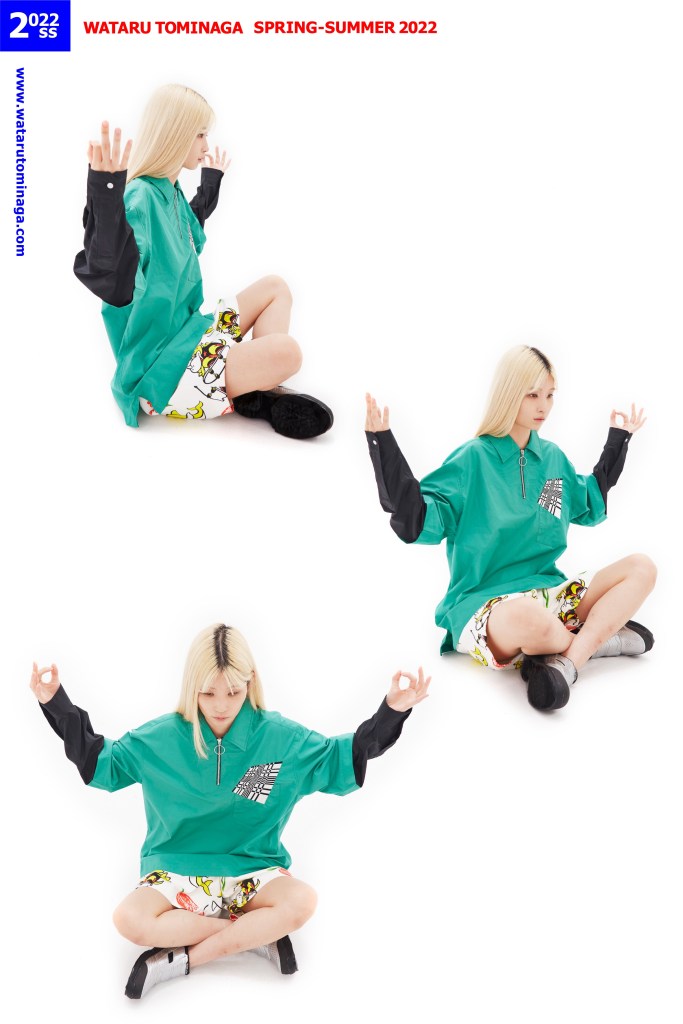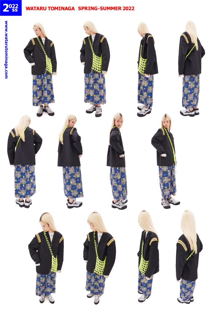 WATARU TOMINAGA Spring/Summer 2022 Collection was inspired by mixtures of various styles of printed textiles such as mascot prints for children’s clothing, vintage photo print textiles, and plaid patterns, all of which are drawn and photographed by the designer.