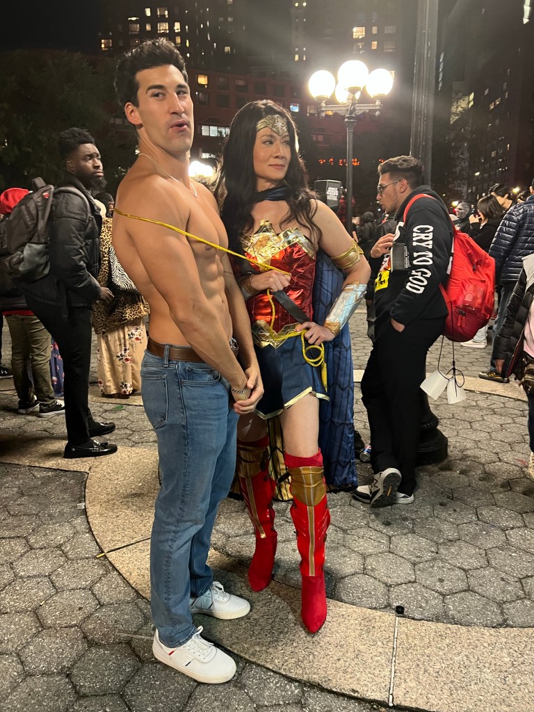 Halloween for Daniel plus Lauren was also a true homecoming because it’s been 3 long years since DpL has done anything that’s Halloween in NYC, there were personal reasons, then COVID, and now no reason existed for DpL not to come in, they made a triumph homecoming to Abracadabra NYC costume and makeup shop where, plus visiting Le Bain at The Standard where Susanne Bartsch hosted her annual Halloween party immediately following time spent in Union Square.