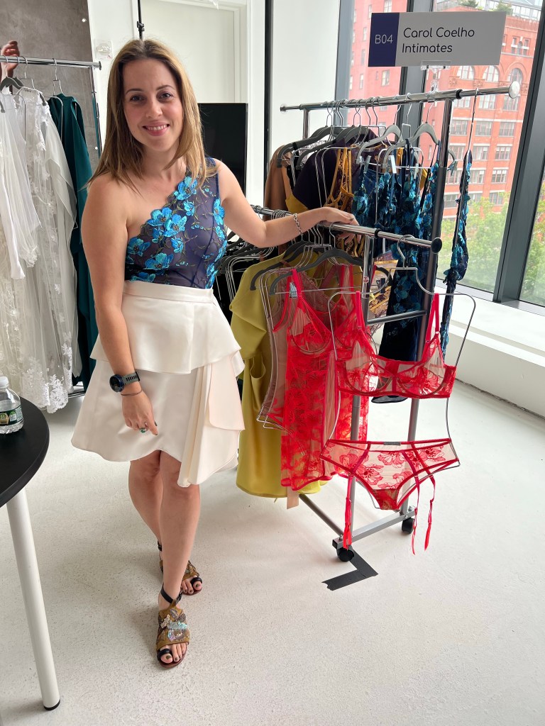 Curve New York held their semi-annual intimates trade show this past Sunday in New York City for 3 days at Spring Studios in Tribeca with an eye on Spring/ Summer 2023’s latest bras, panties, activewear, swimwear that will surely be the rage of every retailer buying inventory for what should be a more upbeat year following the great summer comeback of 2022, Daniel plus Lauren today eyes a great Monday find at Curve with Carol Coelho, closing the gap between bridal and lingerie to become one with their namesake collection.