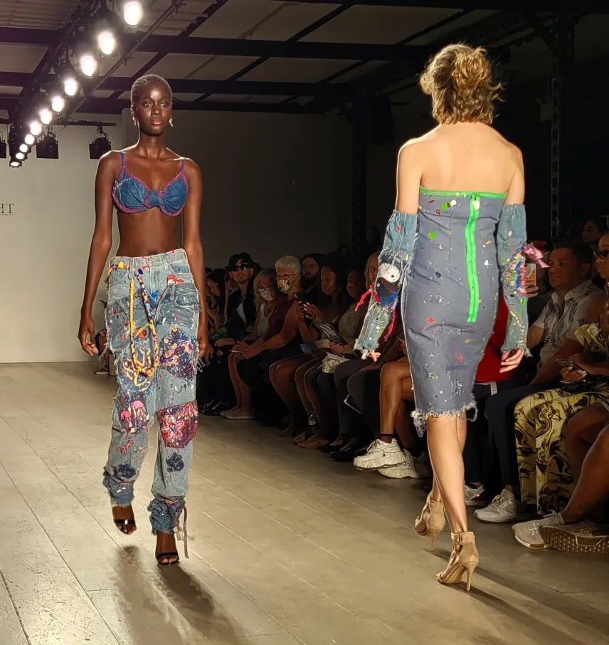 Na’yalaijah Fourniller’s collection consisted of upcycle denim silhouettes such as mini-dresses, bra tops, crop jackets, bustier dresses, and denim jackets with long-braid fringe.
