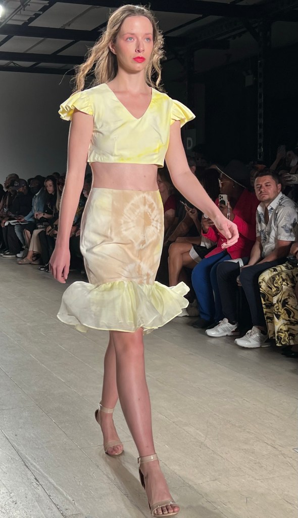 Camille Fuller presented a collection of naturally dyed ensembles consisting of environmentally-friendly fabrics that are sustainable.