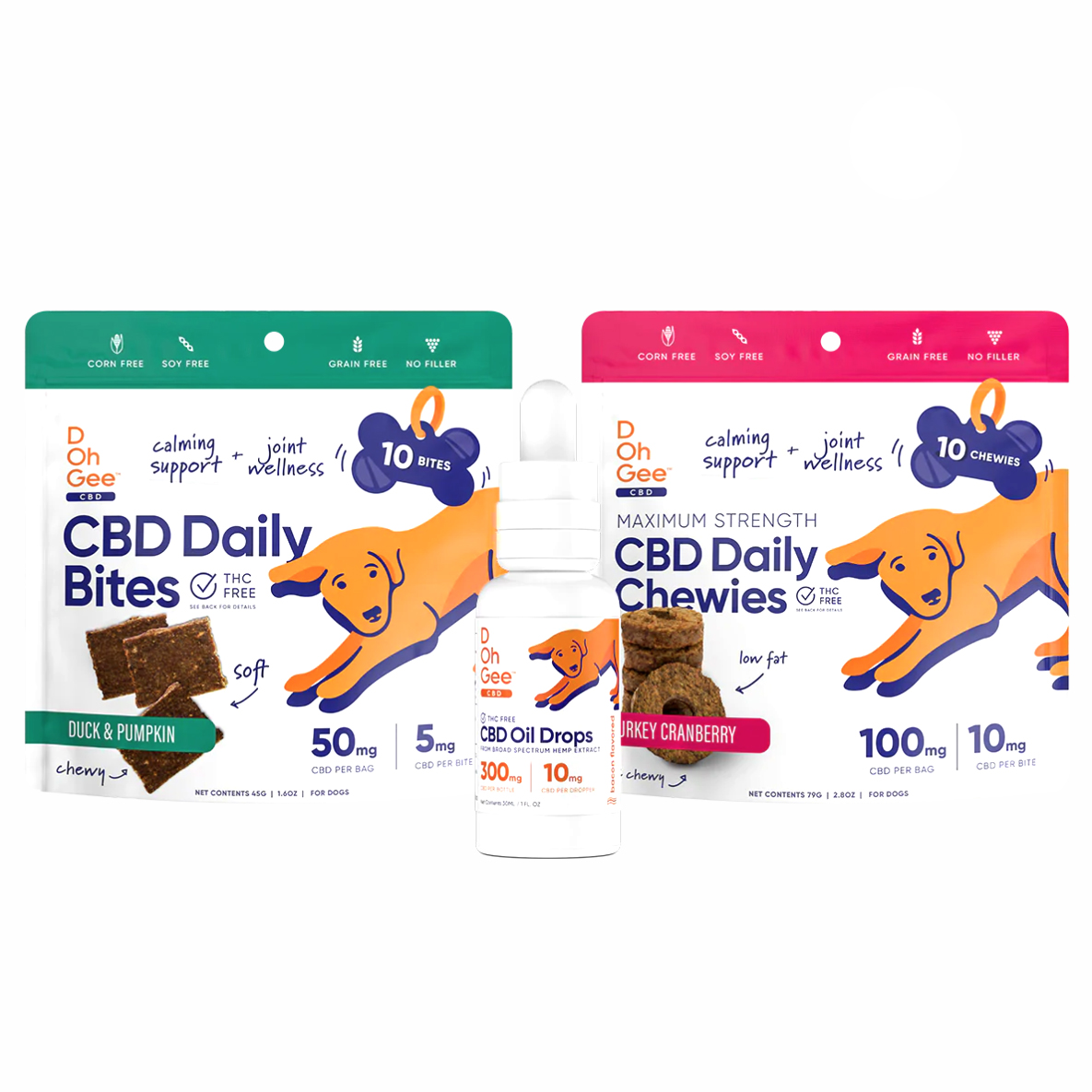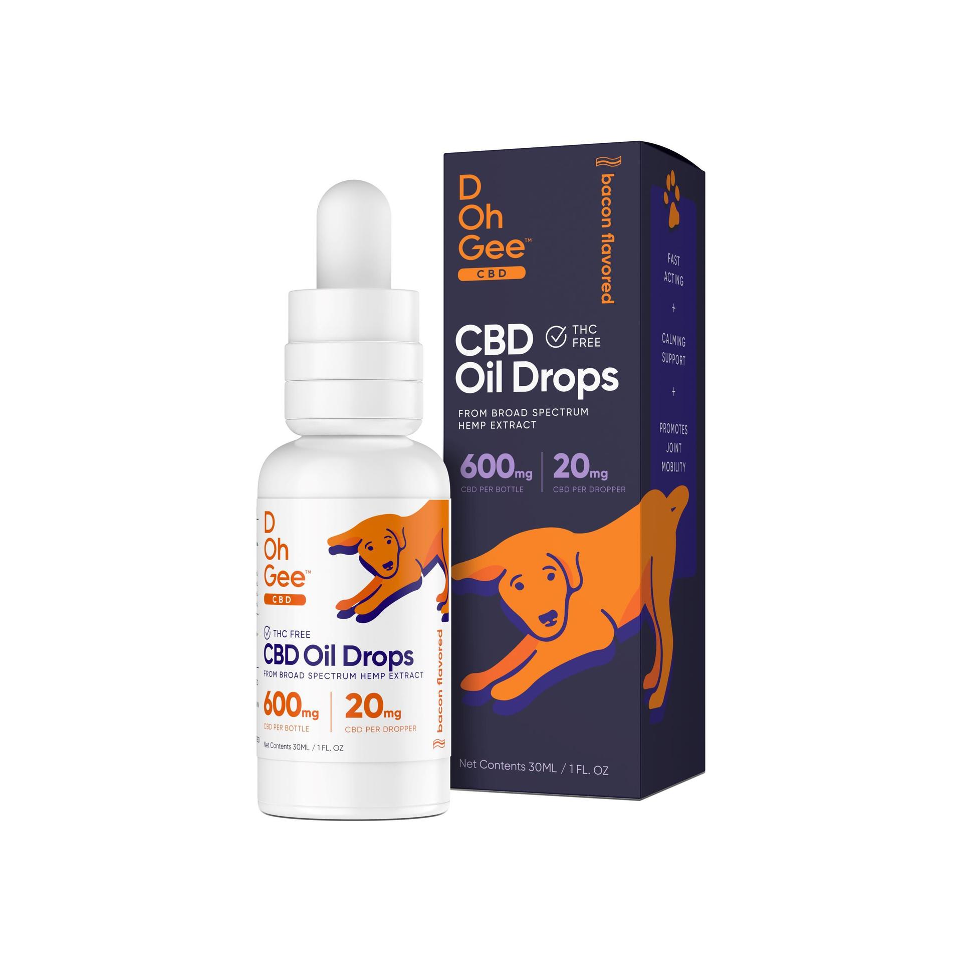 D Oh Gee CBD Dog Oil Drops Bacon Flavor ($29.99-$42.99) – These CBD oil drops are formulated specifically for dogs for calming and joint support. Available in sizes of 300mg for small to medium dogs, and 600mg for medium to large dogs. The drops can be given during or after mealtime, up to three times per day, or as needed, and are easily dropped into food or water. These formulas consist of 100% natural ingredients, including USA grown CBD, and never any fillers, additives or preservatives.