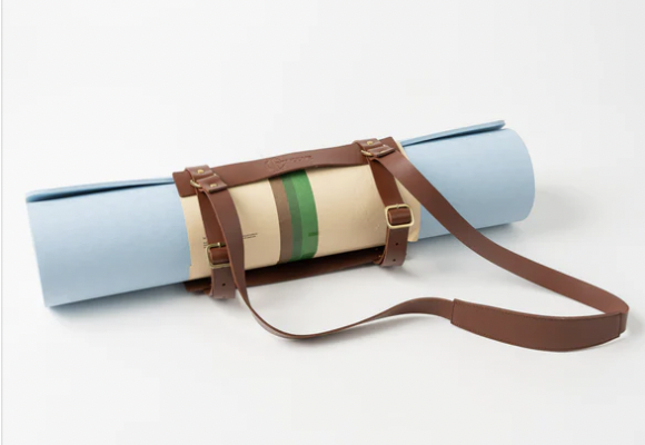 Carry your mat in style with the Dunes Yoga Mat Harness from Ivy Cove. The leather carrier ties around most standard sized mats for easy transport and ultimate style that will take you from workout to brunch or wherever your day is headed. The harness is constructed of premium, responsibly sourced leather with metal buckles and reinforcements.