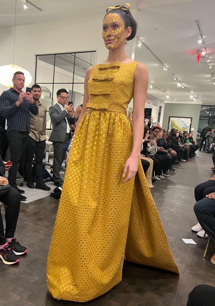 I’ve been attending this designer’s couture shows for a while now. Everything you see in my photos can be specially ordered to fit you perfectly. Couture designers work with their clients on a one-on-one basis and take measurements on you then have the item of clothing sewn in their Altier. In Victor’s case his clothes are made in NYC so you know you are getting the best craftmanship available.