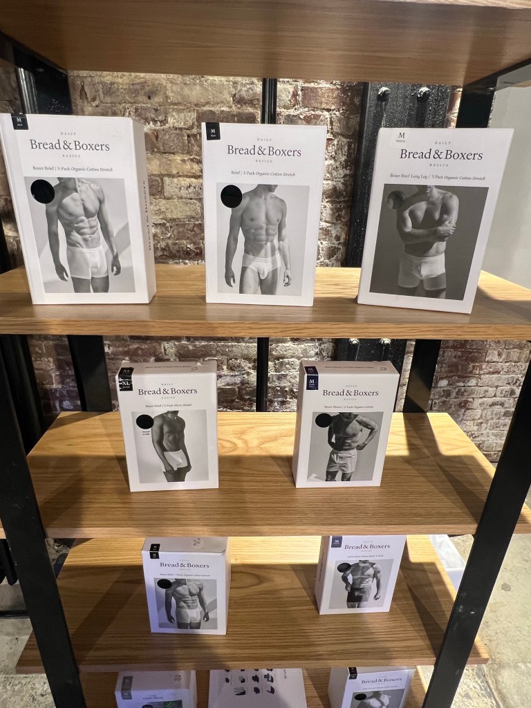 “Bread & Boxers” can be found here in the United States, in nearby places like Paragon here in New York City where they do terrific business with this popular-selling Swedish brand, plus your large or small business can subscribe to this wonderful brand through their fixture program, displaying its hugely successful case packs of t-shirts and underwear with out of the box attire hanging on the side, a small fixture holds 46 cases, larger fixtures for more products are also available.