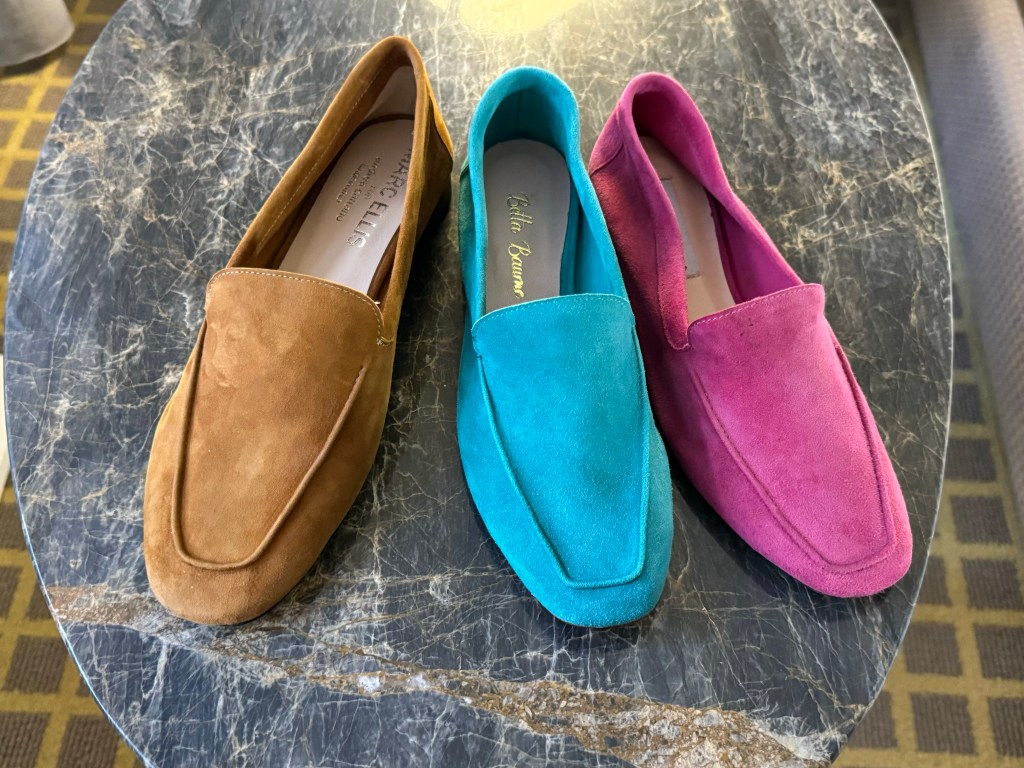 Now if you’re one who wants to hold onto their comfort, but… you want to elevate your style, dive into these lovely colors of beige, blue, and magenta with these suede loafers matching with a pair of flair slacks or pantsuit in monochrome, you can also show off a pop of color with either top, bottom, or these loafers alone that resurrect the norms of fashion which drive fashion journalists to their knees and keep you coming back for more, New York Fashion Week is slightly over 8 weeks away, and these colorful Marc Ellis loafers inspire moments at Spring Studios and Angel Ortiz with Art Hearts Fashion.