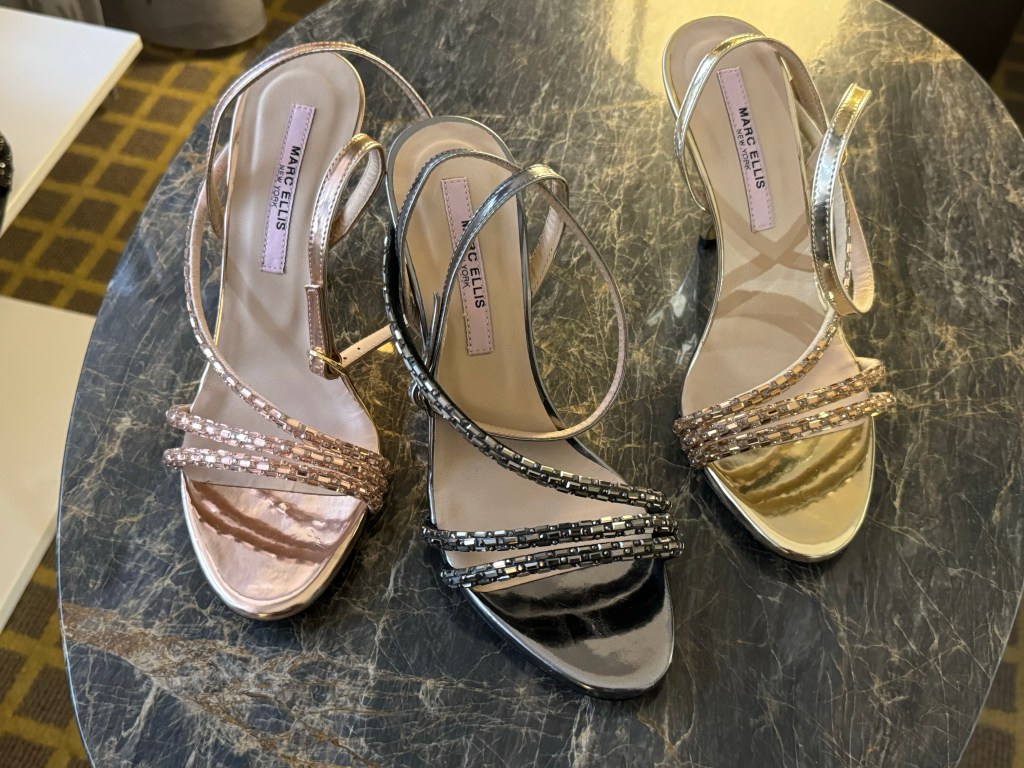 As yours truly illustrates in the image above, Marc Ellis with its lovely pair of high heels sandals are all about a shoe with rose gold, black, and true gold gleam with sequin detail and rhinestone hardware that’s ultimate party girl fashion, reaching out to a new generation of young ladies who want to go out to the club, seek out rooftop parties, special occasion with the simplest, yet most scandalous little black dress close to lingerie, a moment where even new buying power, GEN Z, challenges its 90’s comfort aesthetic for dressier and outgoing options like it’s supposed enemy, the millenials.