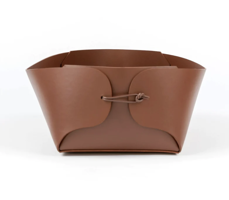 The Vienna Leather Basket is an artfully crafted accessory, meticulously handmade using responsibly sourced leather. This remarkable piece seamlessly blends style with practicality, becoming an artful addition to any environment. Its smooth and rich exterior imparts a sense of opulence while the geometric shape adds a modern touch. More than just a catchall, the Vienna Leather Basket effortlessly elevates the ambiance of any space.