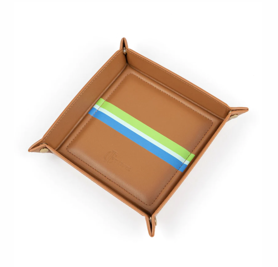 Bring luxury and seaside style into your home with this updated Catalina Catch All tray from Ivy Cove. Constructed of high-quality leather with the signature Ivy Stripe detail, this tray is the perfect place to bring order to your personal items like wallet, keys, jewelry, and watches. The elegant design will fit beautifully on your entry-way table, bedside or bar. It is an essential piece for your own home and makes the perfect gift for the Marie Kondos in your life.