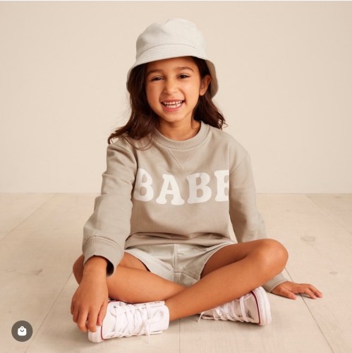 Taking a few notables for LC Little Co. and their spring drop one include this cute look of this “BABE” who wears the Baby & Toddler Little Co. by Lauren Conrad Organic Graphic Sweatshirt in sizes ranging from newborn to beyond toddler, colors not only are assorted, but are aided by themes such as “BABE”, anchor crew, misty blue, and all good feels, it’s a crewneck relaxed fit with soft French terry construction and 100 percent certified cotton.