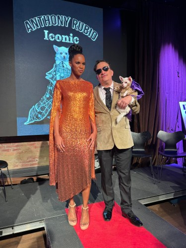 Also on display was “Anthony Rubio: Iconic”, a just released book that’s a prelude to a Canine Couture coffee table book; Anthony Rubio kicked off 2024 by turning to the “Golden Globes” and recreating Jennifer Lopez’s pink gown red carpet look.