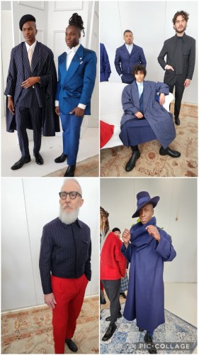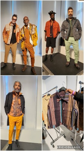 New York Men’s Day which is part of New York Fashion Week, took place on February 9, 2024 which was the first day of NYFW for the F/W 2024 season. Hilldun, a factoring business for the fashion industry sponsored the show. In other words, if you have orders, they will loan you the money to produce the fashions with interest. The show was produced by Agentry PR and there is Henry one of the staff members in the lower left corner of the photo. In my first photo I’m showing how the men looked when they came to the show. One of the biggest trends of men’s fashions that I saw at the show was the “man skirt” which was usually a kilt or pleated. All of the designers were up and coming on the men’s fashion scene.