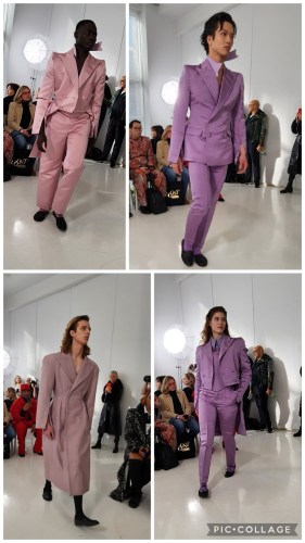 The A/W 2024 collection was called Area and this was a runway show not a presentation. Retro inspired by the disco fashions of the 1970s to mid 1980s. Lots of satin was used throughout the collection which is made in NYC. I love the pretty pastel shades of rose pink and orchid which were inspired by what musician Nick Rhodes wore back in that era. Sleeves the button and unbutton at the bottom are an interesting detail that makes these jackets so special. A unisex collection designed by Andre Gerard Michel Jr. The tailored collection has jackets, coats, pants, shirts and jumpsuits. This is custom made to measure right in NYC’s garment district. For more information WWW.LANDEROSNEWYORK.COM