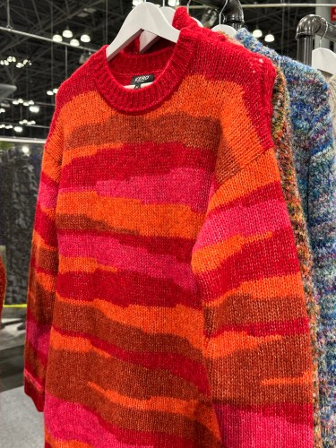DANIEL PLUS LAUREN on Wednesday felt like red was a proper color to wear on the first day of Coterie, only because it celebrates a new beginning for the trade show as its new parent company is MMGNET (MMGNET colors are green). But as Coterie gets a fresh new leader, DPL returns to the warm feels and soft touch of Alpaca Collections, a family of designers using this precious animal from Peru to create fine pieces with elaborate use of color and handmade patterns.