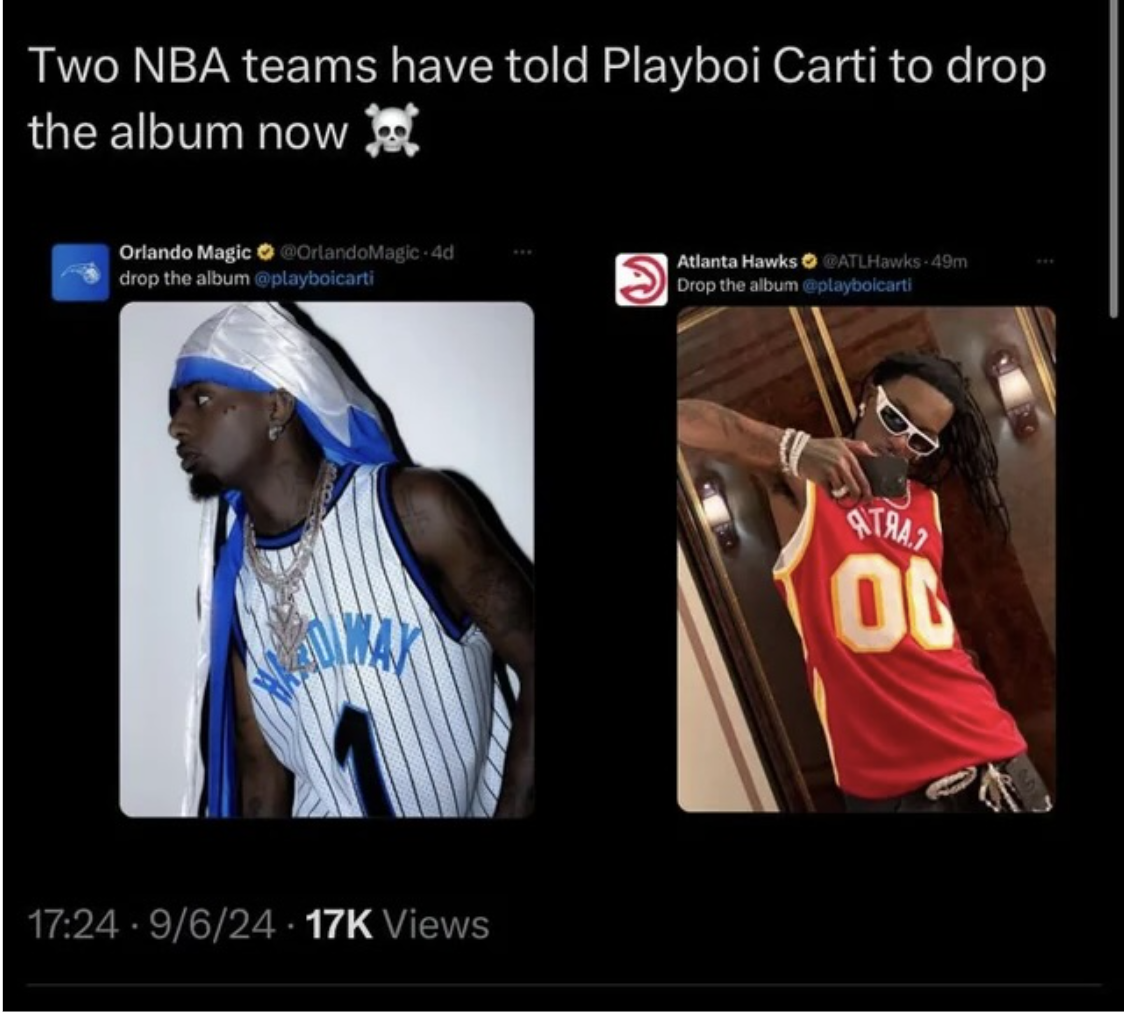 Even NBA teams are hype for his next album with both the Orlando Magic and Atlanta Hawks posting Carti with the caption “Drop The Album.”