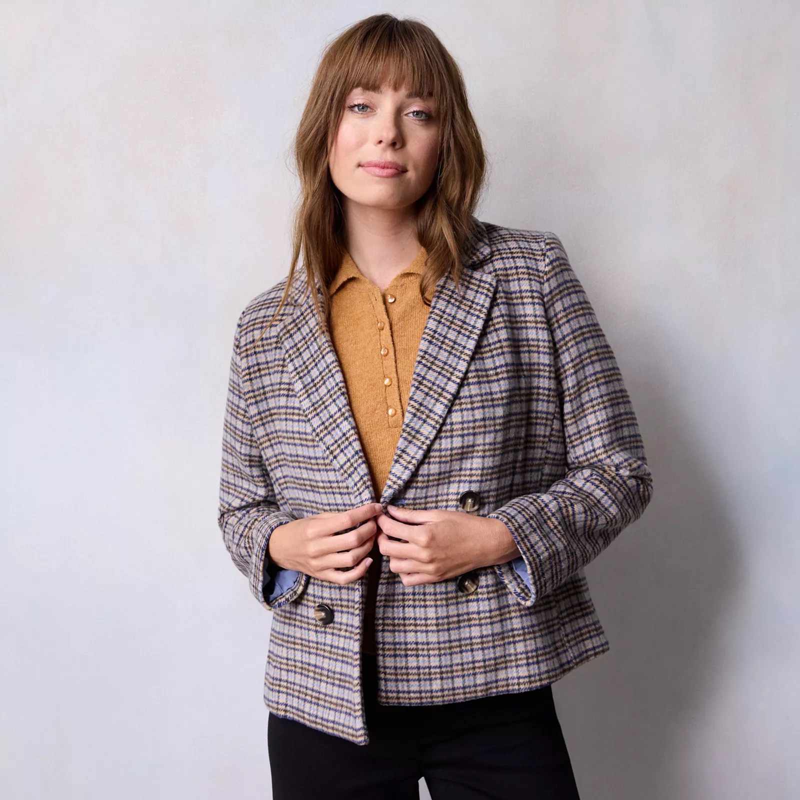 It’s not the oddest thing in the world, but kicking off a new work week today on the last day of the month brings high optimism for Lauren Conrad blazer at Kohl’s. This is an LC Lauren Conrad Double Breasted Notch Collar Blazer designed for the fashionable business professional in mind. You have your choice of 2 powerful office space colors being Navy Houndstooth seen here, and Red Houndstooth Check seen on petite sizes. A four-button front that’s fully lined, 24 inch length from shoulder to hem, and a new lease on life for polyester that’s recycled and machine washable.