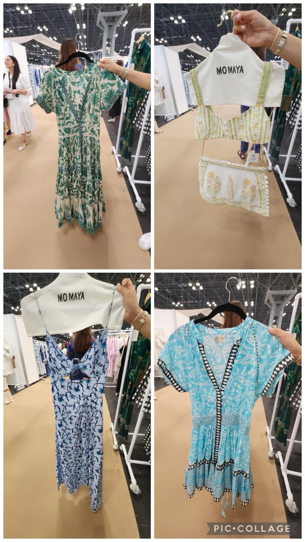 This collection is from Singapore and I interviewed the designer/founder, Parul Jain and she told me she got her inspiration from traveling. She makes everything in India with hand printed fabrics. A great resort and summer line of separates and dresses. Matching tops and peasant/straight skirts with slits. Peasant dresses with sleeves, short skirts with flounces and matching halter tops are some of the key styles. Prints in are in buffalo check, traditional Indian motifs, stripes and florals all in sustainable cotton and linen fabrics. There is something for every size woman in this collection. Sizes are XS – XL Priced at $200.00 – $250.00 for each item WWW.ITSMOMAYA.COM
