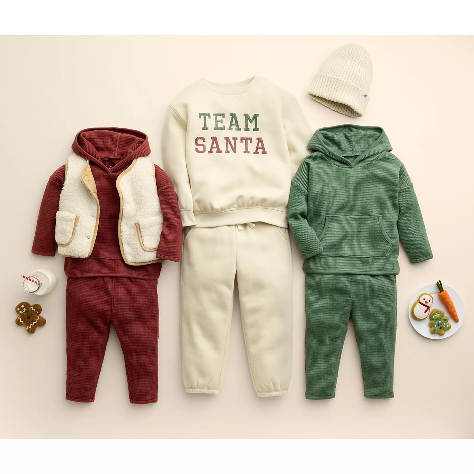 Lauren Conrad made the holiday season official today at Kohl’s with the LC Lauren Conrad baby/ kids edition that’s Little Co. by Lauren Conrad. Lauren dropped a cute and stylish collection of tops, bottoms, colors, textures, patterns, and hues for your little one to celebrate festivities. It’s no secret that red and green are the official colors of Christmas, and you can find hues celebrating holiday colors. DANIEL PLUS LAUREN discovered the Cozy Pullover Hoodie & Pants Set which sets the tone for baby and toddler’s first Christmases.