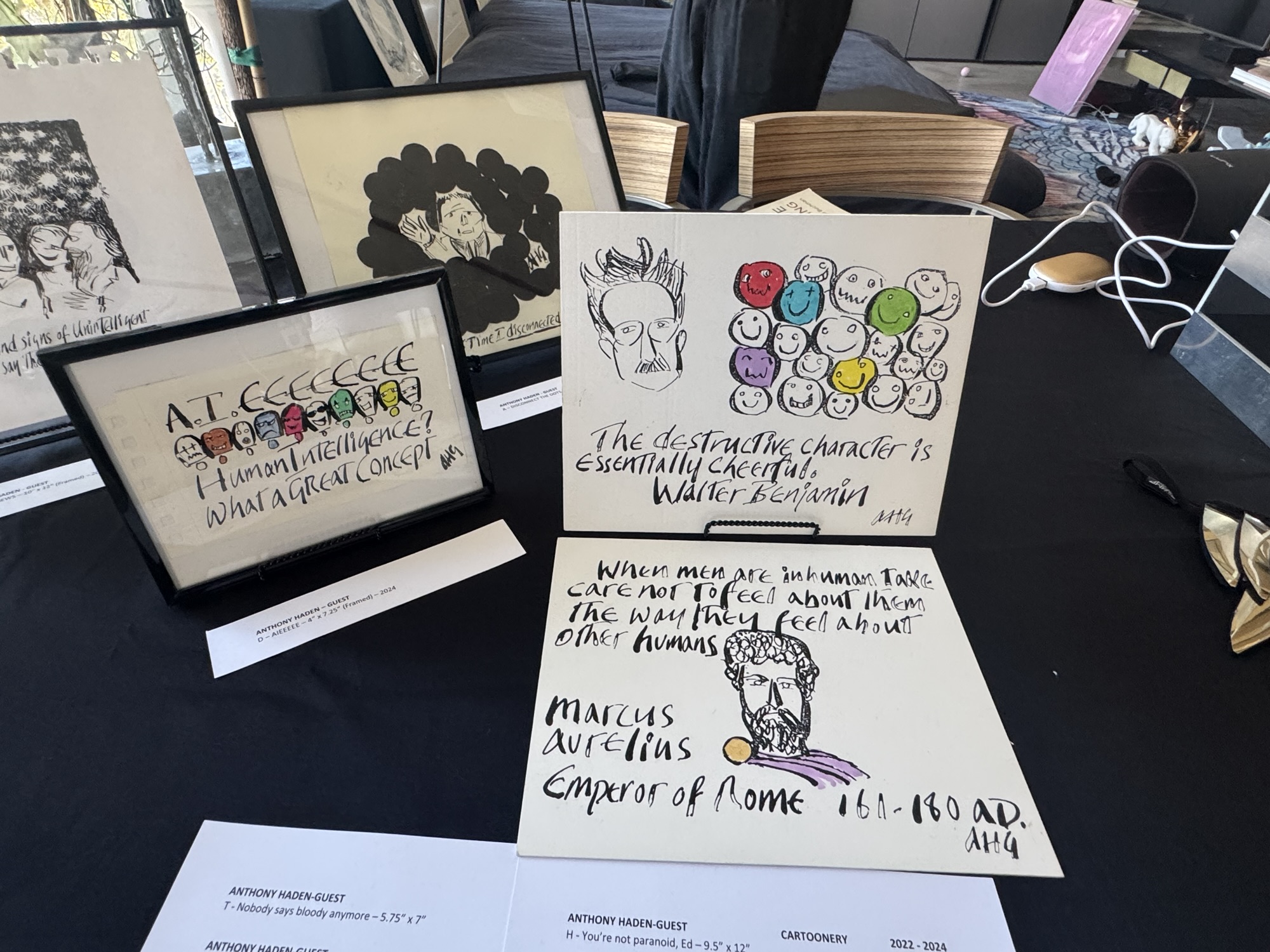 Words have never been a more artful display of what the artist is feeling, and it extends far out into the population. Anthony Haden-Guest uses his words to put the world on notice about where we stand as a human species. Unintelligent life exists at every corner of our universe, but no one like Anthony directly states it with cartoon and word-perfect fashion. What’s even more baffling is that fact that human smarts actually exist, and it’s very easy to find a destructive character… just by being cheerful.