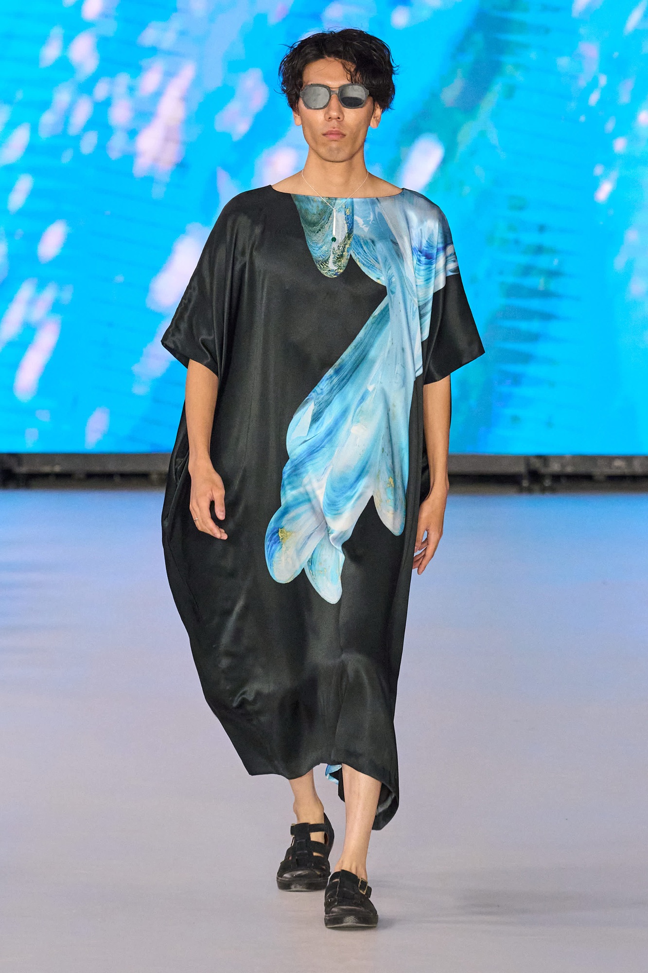 The gender-neutral garments, crafted primarily from recycled polyester, align with sustainable development goals, demonstrating Tosa’s commitment to both environmental and artistic innovation. Each piece is not just clothing but a vibrant statement of vitality, designed to empower and energize the wearer for those special moments. The runway showcase highlighted Tosa’s ability to turn abstract concepts into wearable art, making “Sound of Ikebana (Spring, Summer)” a groundbreaking celebration of fashion and technology.