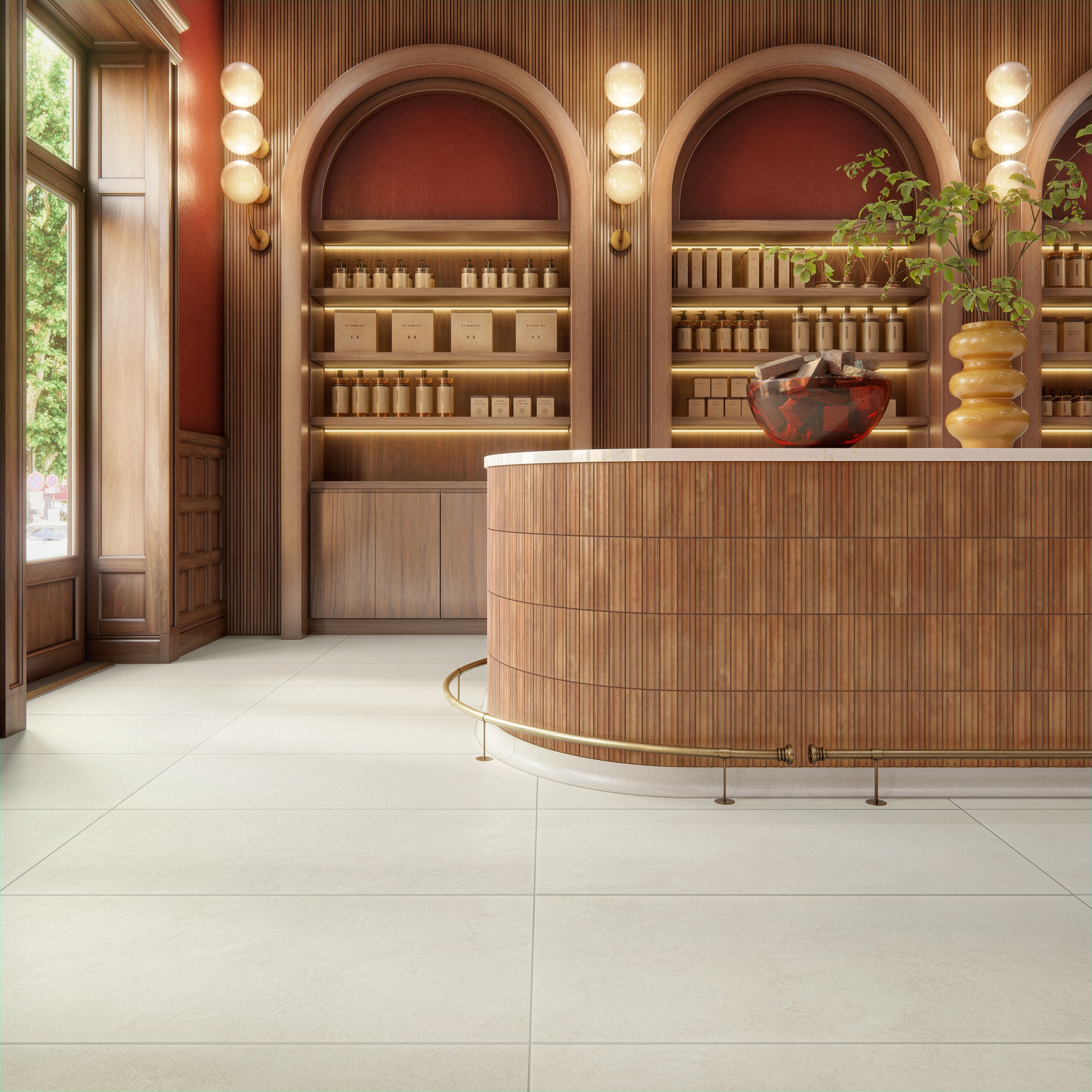 Transform your surroundings into a haven of tranquility with Indoterra porcelain tile. A concrete look canvas of neutral tones, Indoterra offers a minimalistic design with large formats, dimensional surfaces, and StepWise technology that provides 50% greater slip resistance, making this product ideal for an immersive experience indoors and outdoors. Choose the timeless allure of the 2×9 brick with the choice of a fluted or flat surface, or the subtle sophistication of the 12×24 woven wall tile and circle mosaic. Indoterra invites you to play with textures and shapes in a color palette that will stand the test of time. This collection allows for creativity and vision to come to life in any setting. Suitable for floor, wall, countertop, exterior, and shower floor applications. Proudly Made In The USA.