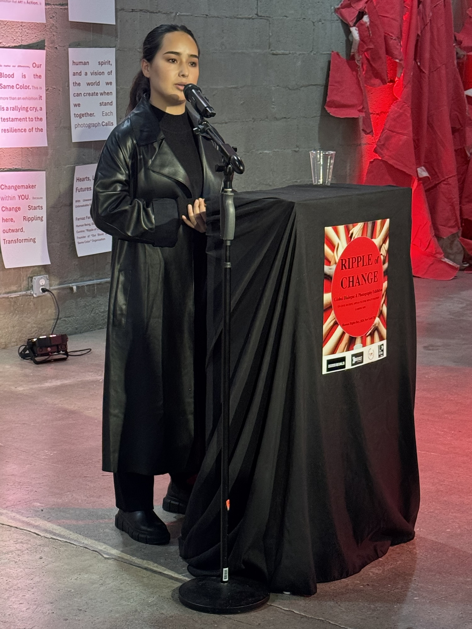 Swathmore College student, Mina Bakhshi, is a huge proponent of women’s rights in Afghanistan, where Mani has fought tirelessly for women’s voices to be heard. Mani told the story of how the Taliban reclaimed Afghanistan in August 2021 which surely put an end to the War In Afghanistan. But as the Taliban took over, Afghanistan women became second class citizens. Women and girls lost their privilege to not only dress how they wanted, but couldn’t go to public places, and could no longer go to school. Mina got truly emotional about how we need to use our voice as artists to advocate that the women of Afghanistan need to be free, and not be subjected to the Taliban’s brutal agenda on all women living in Afghanistan if they choose to continue living in Afghanistan.