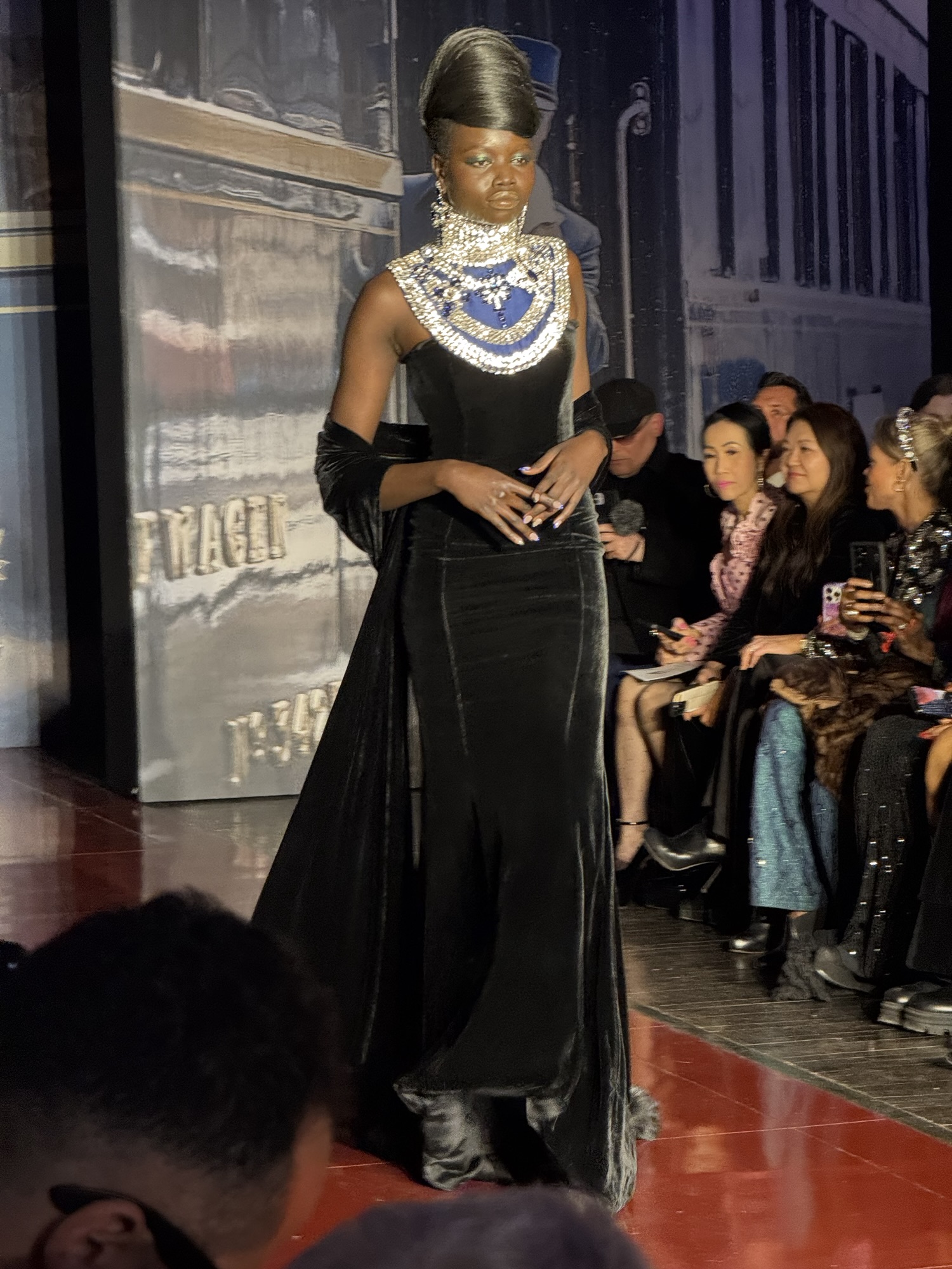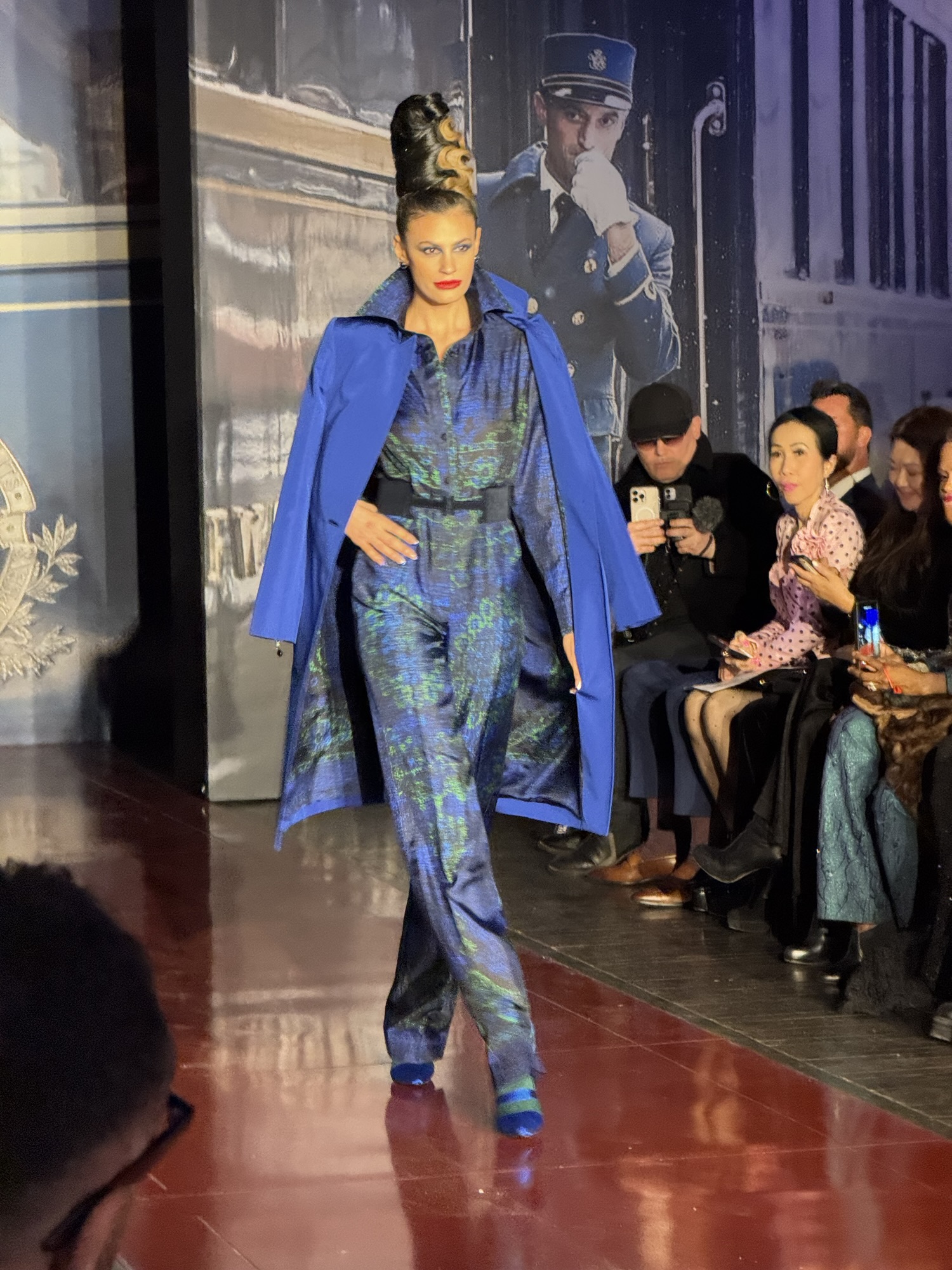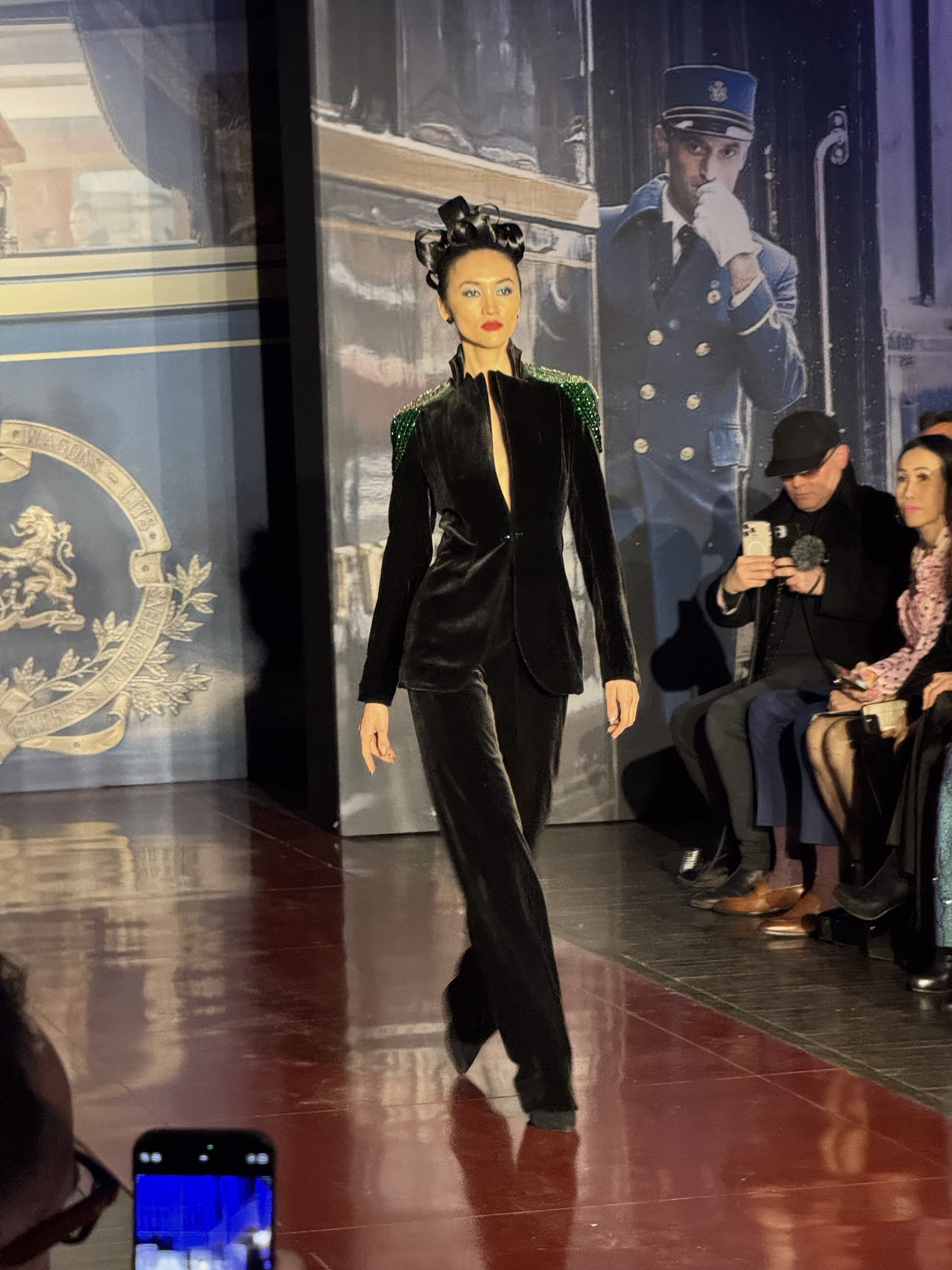Zang Toi’s New York Fashion Week Runway Show took place on February 13, 2025 in the Park Avenue Christian Church in Manhattan. His fall/winter 2025 Couture Collection was called Opulence of Orient Express. He based the collection on internation Jet Setters (people) making a grand entrance onto the newly relaunched opulent Orient Express Train wearing his beautiful and glamourous Couture Collection of clothing and accessories. Zang doesn’t follow trends nor what anyone is else is doing in the fashion industry. He has own ideas of classic and tailored clothing for women along with some men’s styles. I’ve been going to his fashion shows for over 30 years and what I saw in his collection from back then is so timeless and classic that it could still be worn nowadays and not look dated. He designs clothing to make a woman feel beautiful and glamourous, by using the best European Fabrics in jewel colors with plenty of added embellishment with the use of jeweled trims on the clothes. Zang is a master of fit and his clothes fit impeccable on all the models.