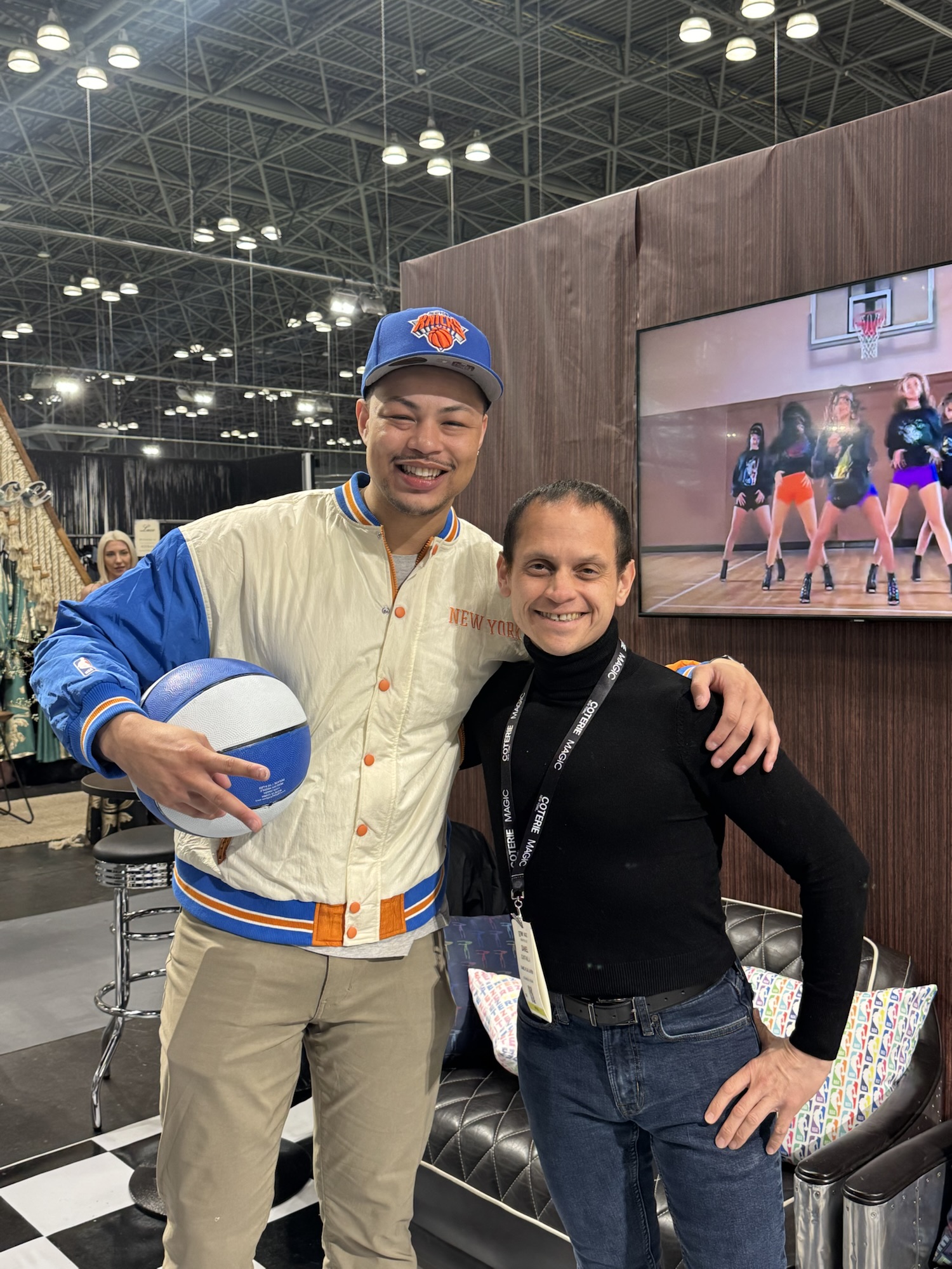 DANIEL PLUS LAUREN got to cap off this Terez sports glam experience by sharing a moment with Jason “Buckets” Barrera showing off his famous Harlem Globetrotters basketball spin trick. DPL for one second held a spinning basketball in his hand, shocked as all hell, and couldn’t get over accomplishing such an achievement.