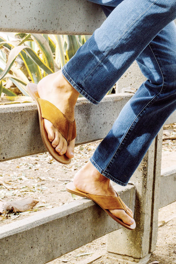 Inspired by the cool coastal vibes of California, the Surfliner Flip-Flop sandals feature durable suede on the upper, a lambskin lining for comfort, and rubber on the outsole for comfort, support, and durability. The minimal design is meant for everyday wear and pairs with all your summer looks.