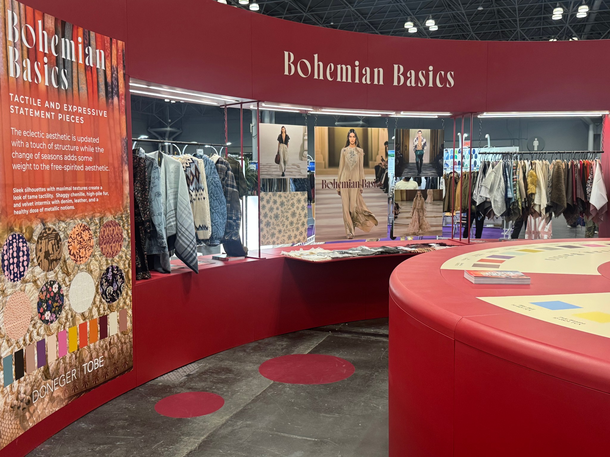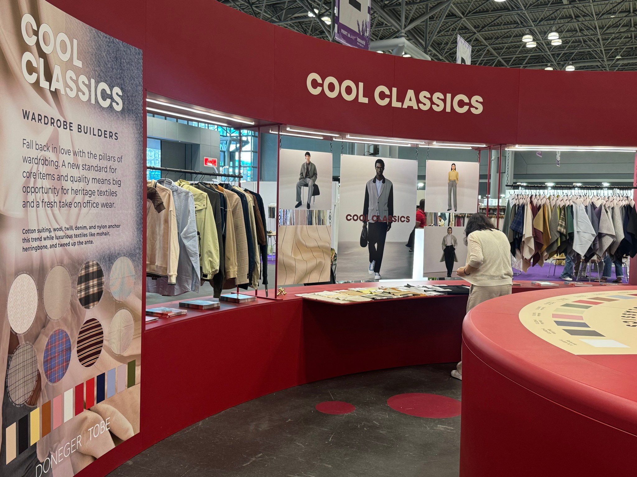 Texworld USA kicked off today at the Javits Center here in New York City where this July edition breaks down the trending textiles found on women’s and men’s fashion for FW25/26. If we still haven’t learned anything about GEN Z, they’re a tech generation with concessions, they want their 90’s trends along with the true grit of fashion from that time. Apparently, the cycle of digital with social media has put a taxing burden on the new class of 18 to 49 year olds, GEN Z is feeling classic as other troubles in the world influence this direction. Trend Showcase here at Texworld USA gives you 3 fundamentals of textiles such as Cool Classics, Bohemian Basics, and Retro Reissues.