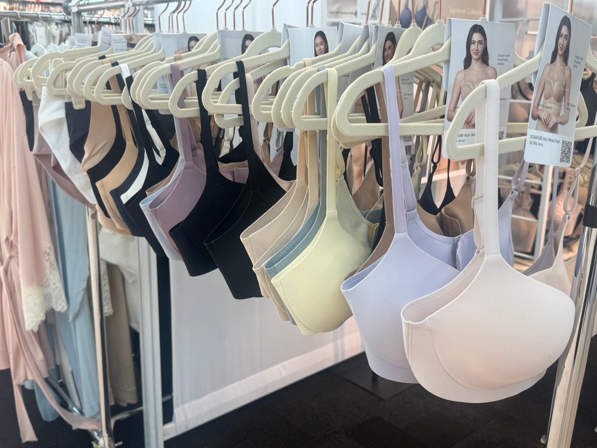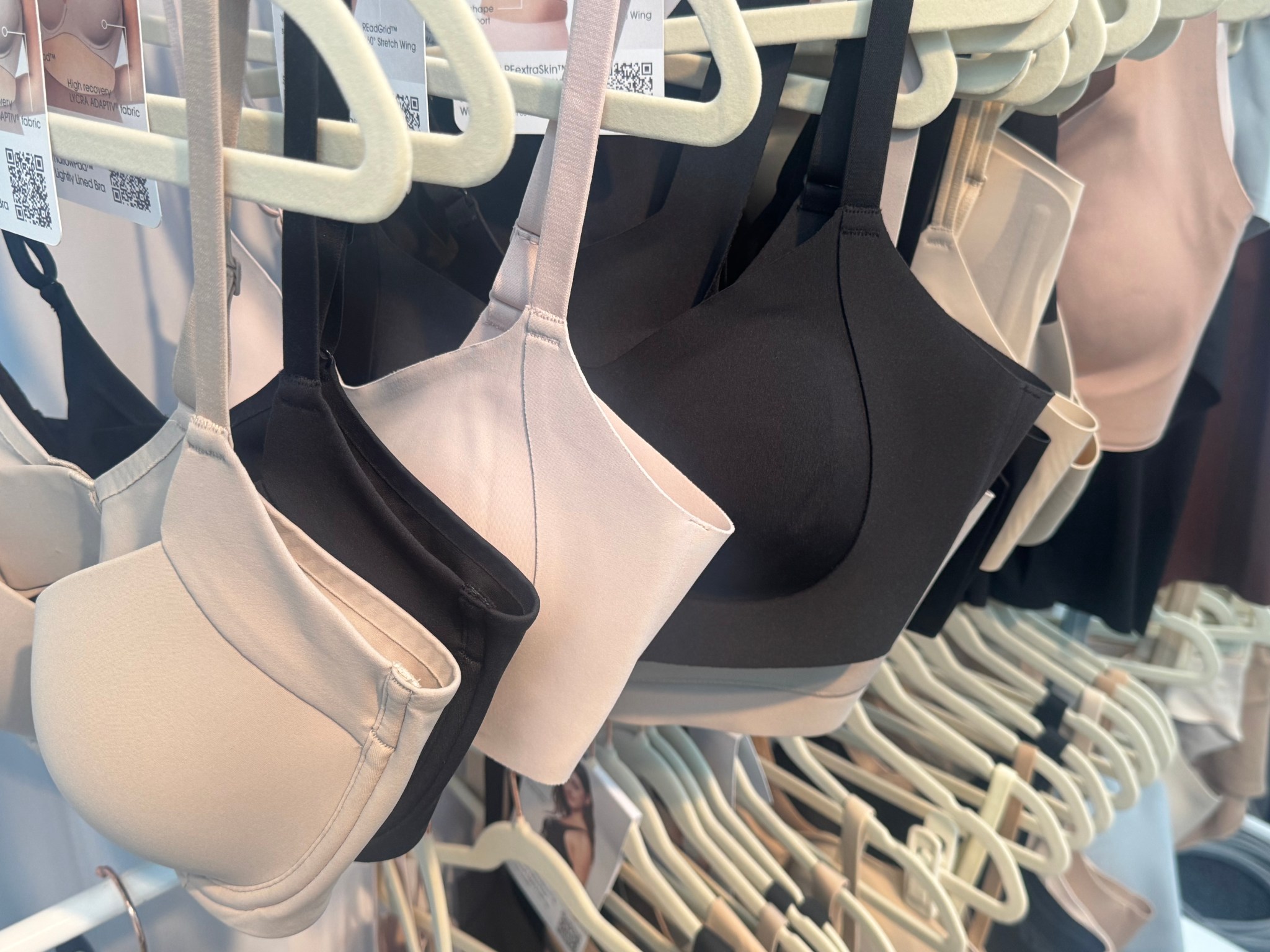 Next, we go to Her Own Words sister brand, Floatley, using the same comfort engineering approach to create their intimates. The use of nylon this time with Floatley is to make their solid neutral colored bras to feel and be as loose as possible. Floatley gives you optimal comfort to create a bra that’s made up of buttery soft brushed fabric, also designed to keep bra pads in place. Floatley also is affordable, and stands by the mission of engineering a secure bra that has no seams, and no wires. Just all comfort.