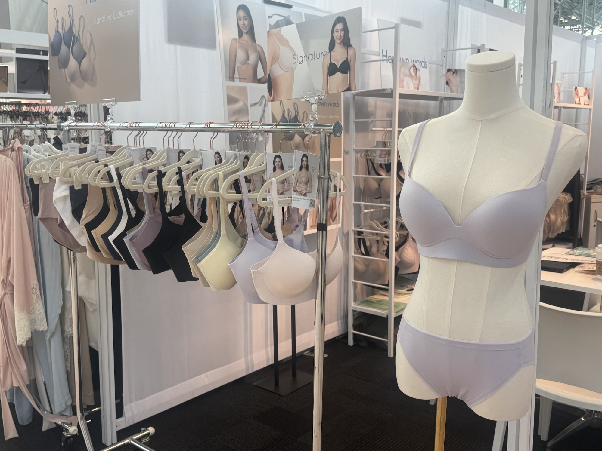 Curve New York here at the Javits Center on day 2 brings on more opportunity to place orders for intimates of all kinds. There’s never a shortage of new innovations happening now in the lingerie industry as Curve brings in new ideas with first time brands on the trade room floor. The best medicine in this moment in time is transparency, giving your customers a reason to invest in you, why you should buy their bra. DANIEL PLUS LAUREN eyes some new brands to Curve New York with the duel intimate and activewear maker, Her Own Words and Floatley.