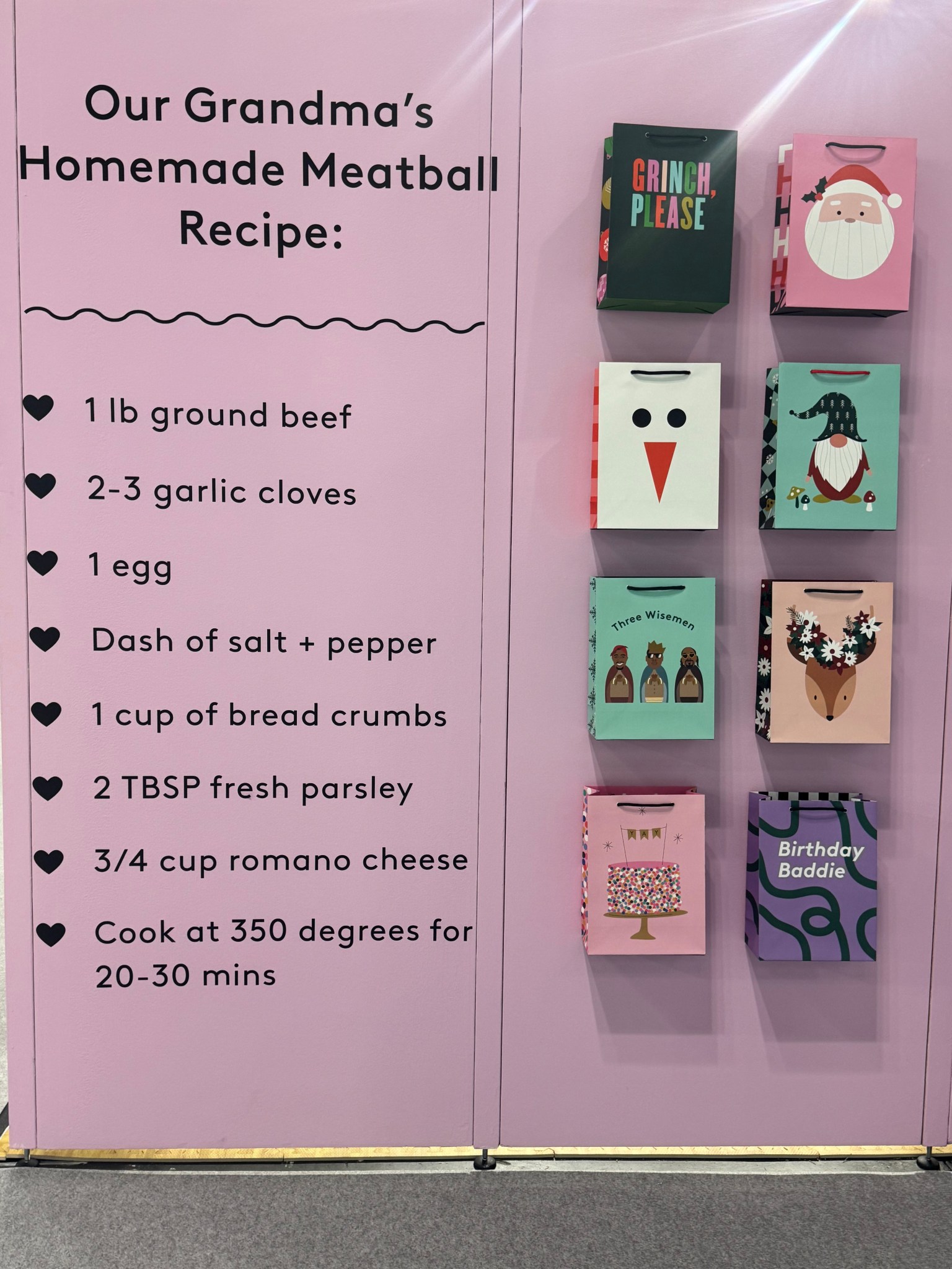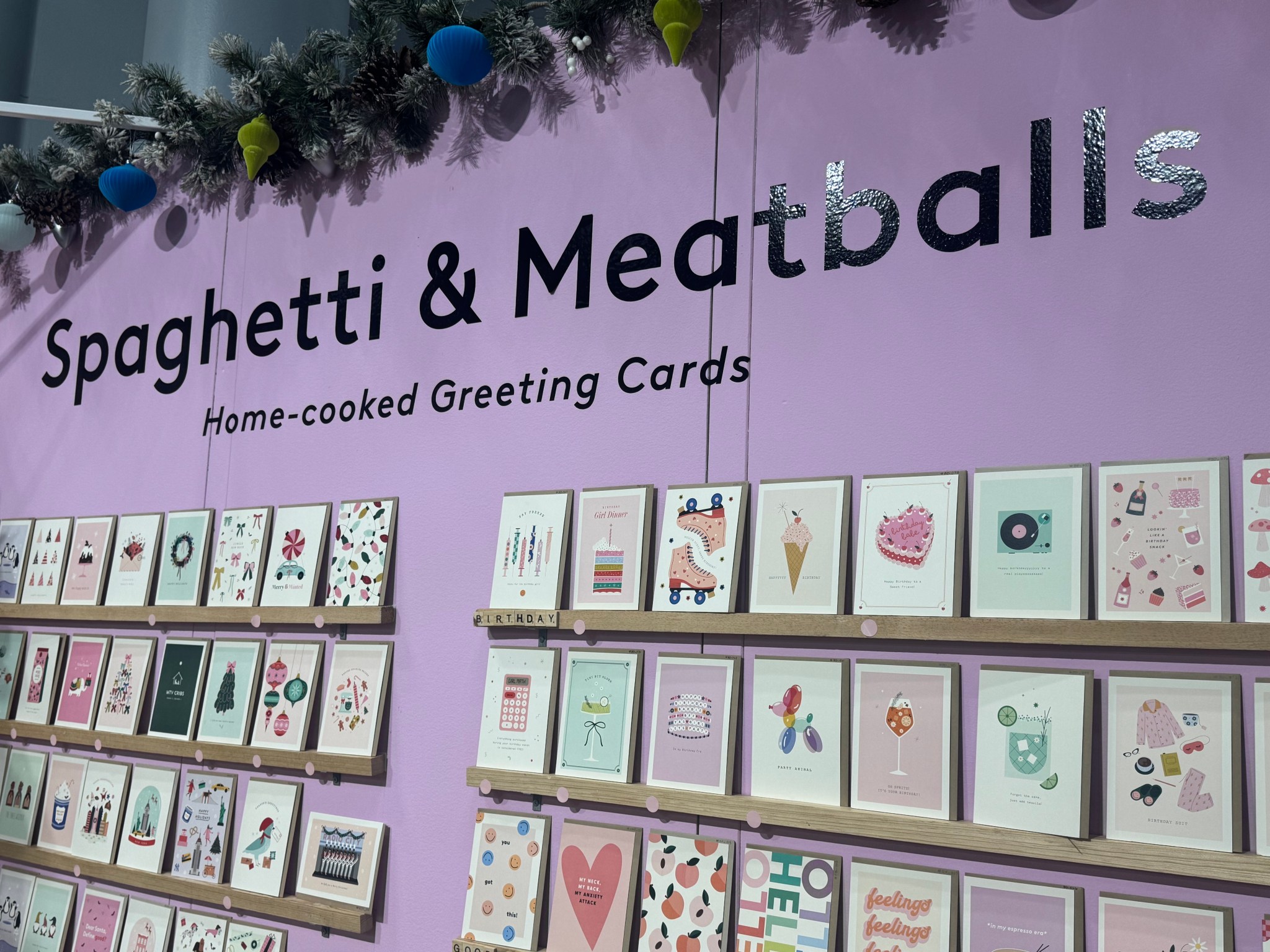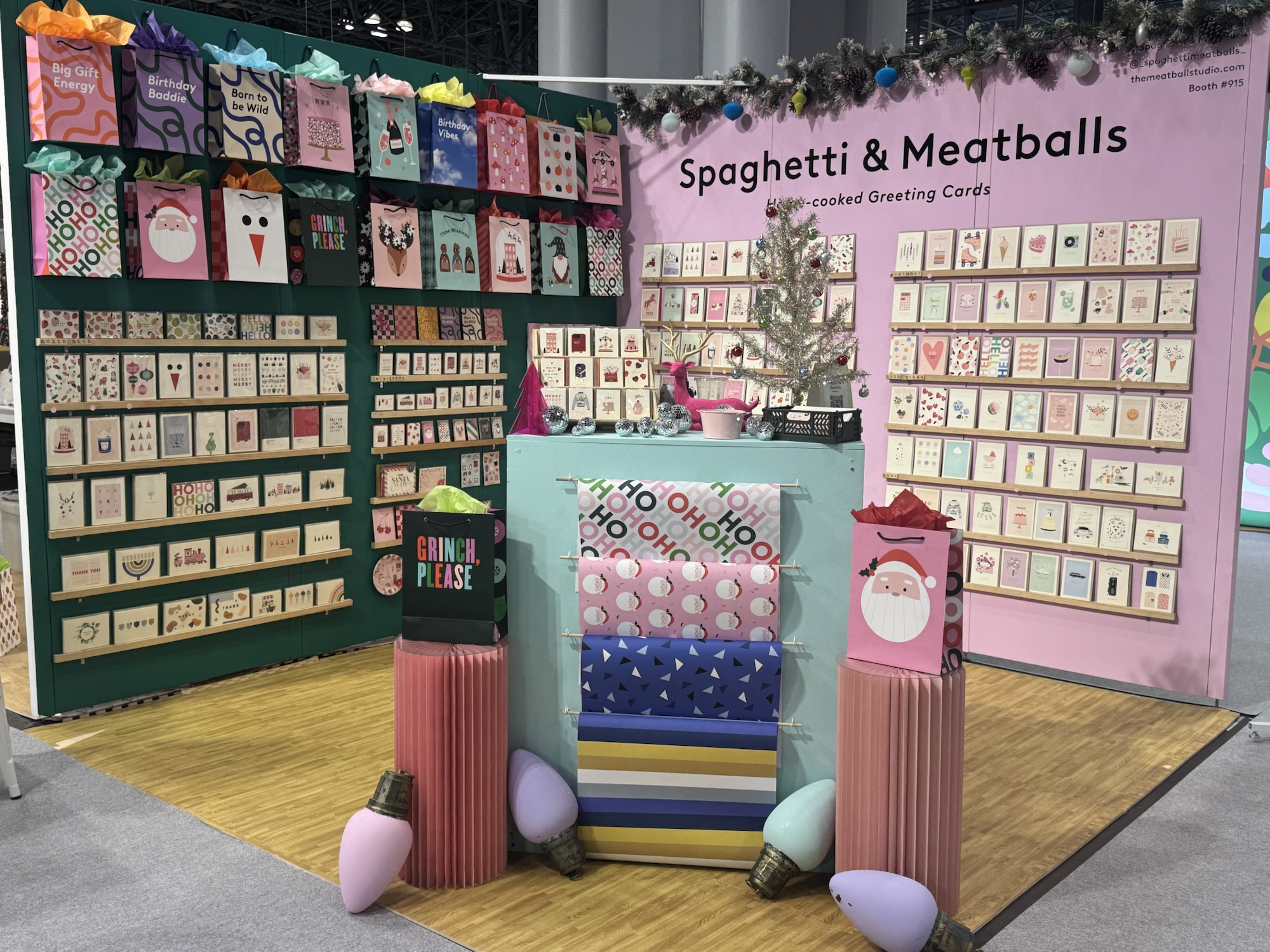 As NY NOW comes to a close for this Summer edit here at the Javits Center, the 3rd day today was as inviting as ever. The aroma of home decor, dolls, everyday goods, and Christmas 2025 just makes you sit down for dinner. DANIEL PLUS LAUREN got one more taste of Christmas with a witty helping of “The Grinch”, wrapping paper, gift bags, and grandma’s meatballs. DPL seeks the savory site of Sunday dinner with the clever creation of the greeting card company, Spaghetti & Meatballs.