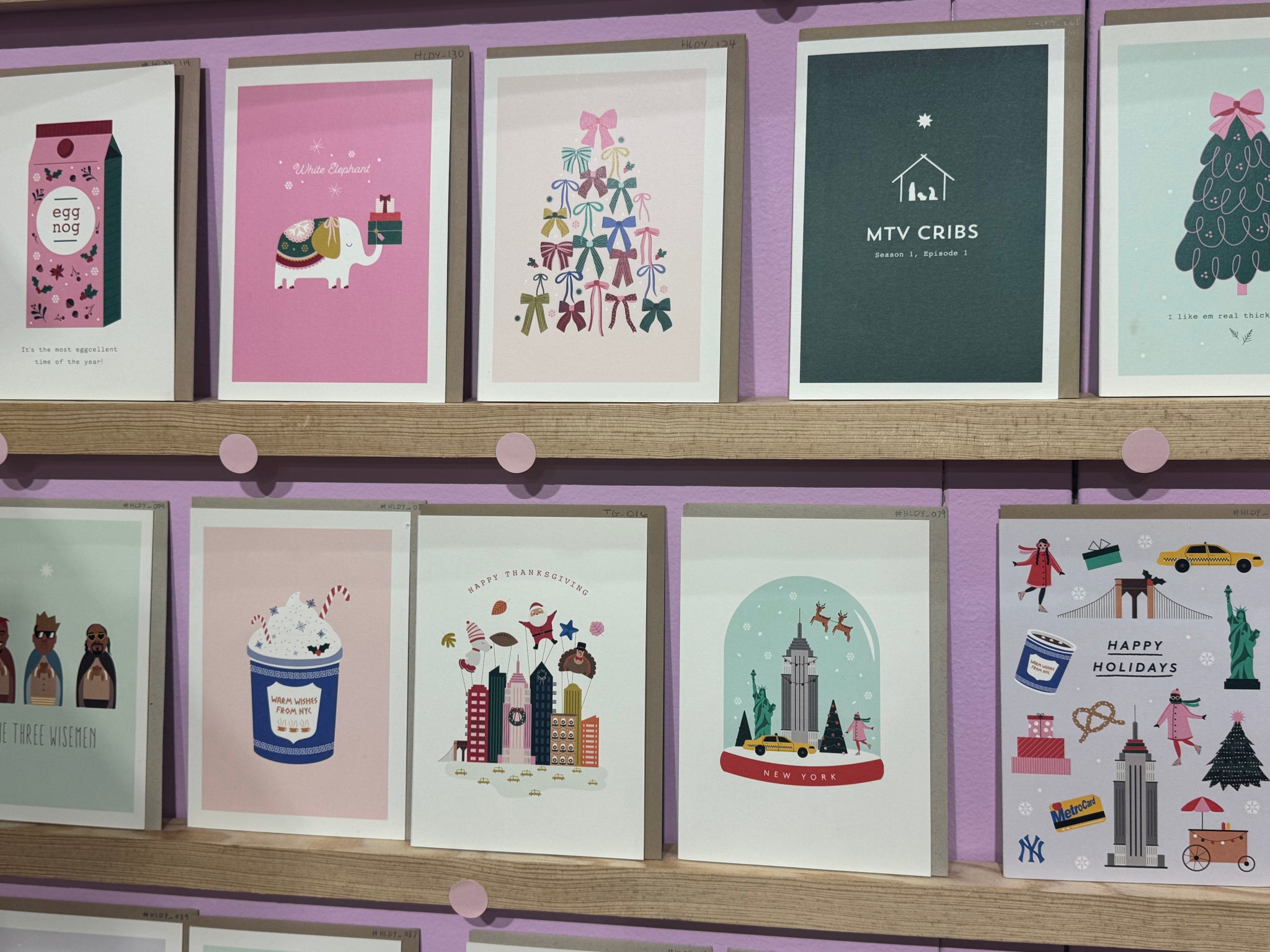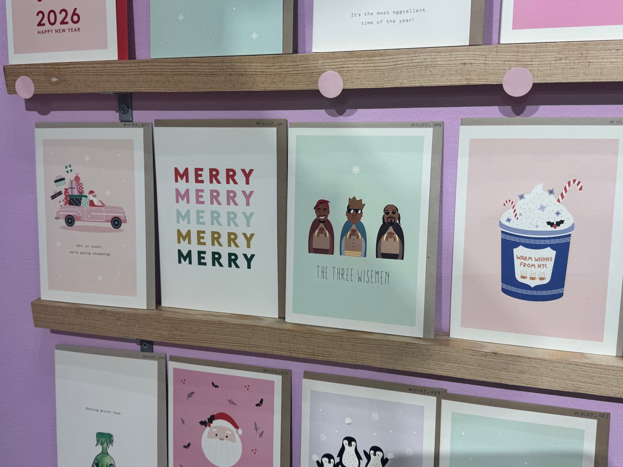 Established in 2018, and after working a corporate job at Bloomingdale’s, Maria Castiglione started Spaghetti & Meatballs since colleagues asked her to make cards. This home-cooked family business dishes out Christmas cards that play a humorous tone on the holidays, artfully display the Three Wise Men and drawing inspiration from pop culture. S&M also has its fair share of New York City moments that craft lower Manhattan in beautiful cartoon form from Metro Cards to street food blue coffee cups. Plus the Statue Of Liberty and the Empire State Building captured in a snow globe with Thanksgiving balloons via the Macy’s Thanksgiving Day Parade.
