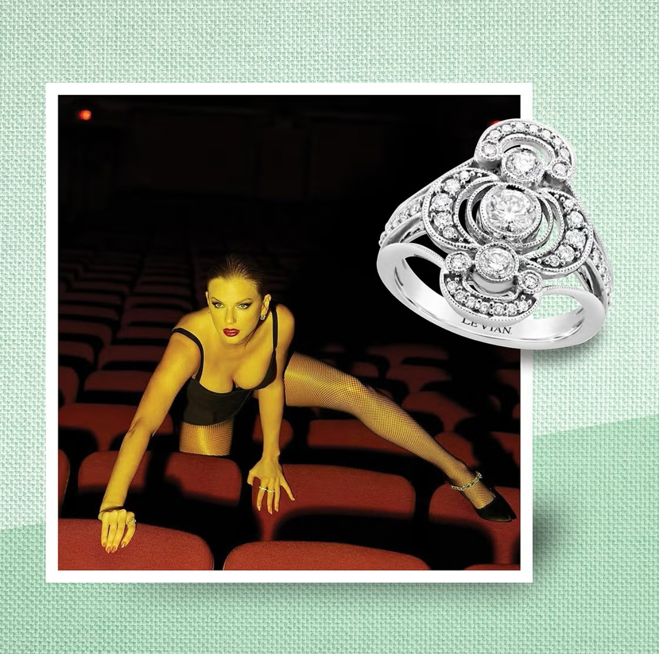 If you want to finish your Friday off strong and fierce, then you definitely have to look to Taylor Swift to get you through these New York City streets as Le Vian Jewelry reveals tonight that Taylor wore a diamond ring from them for “The Life Of A Showgirl”. Both Taylor and Le Vian Jewelry have done something right when choosing a fine diamond ring like this because of its abundant diamond count with the precious metal of gold. Circular figure 8 in quad fashion play a pivotal role on the beautiful design of this ring that’s worth a solid feminine investment.