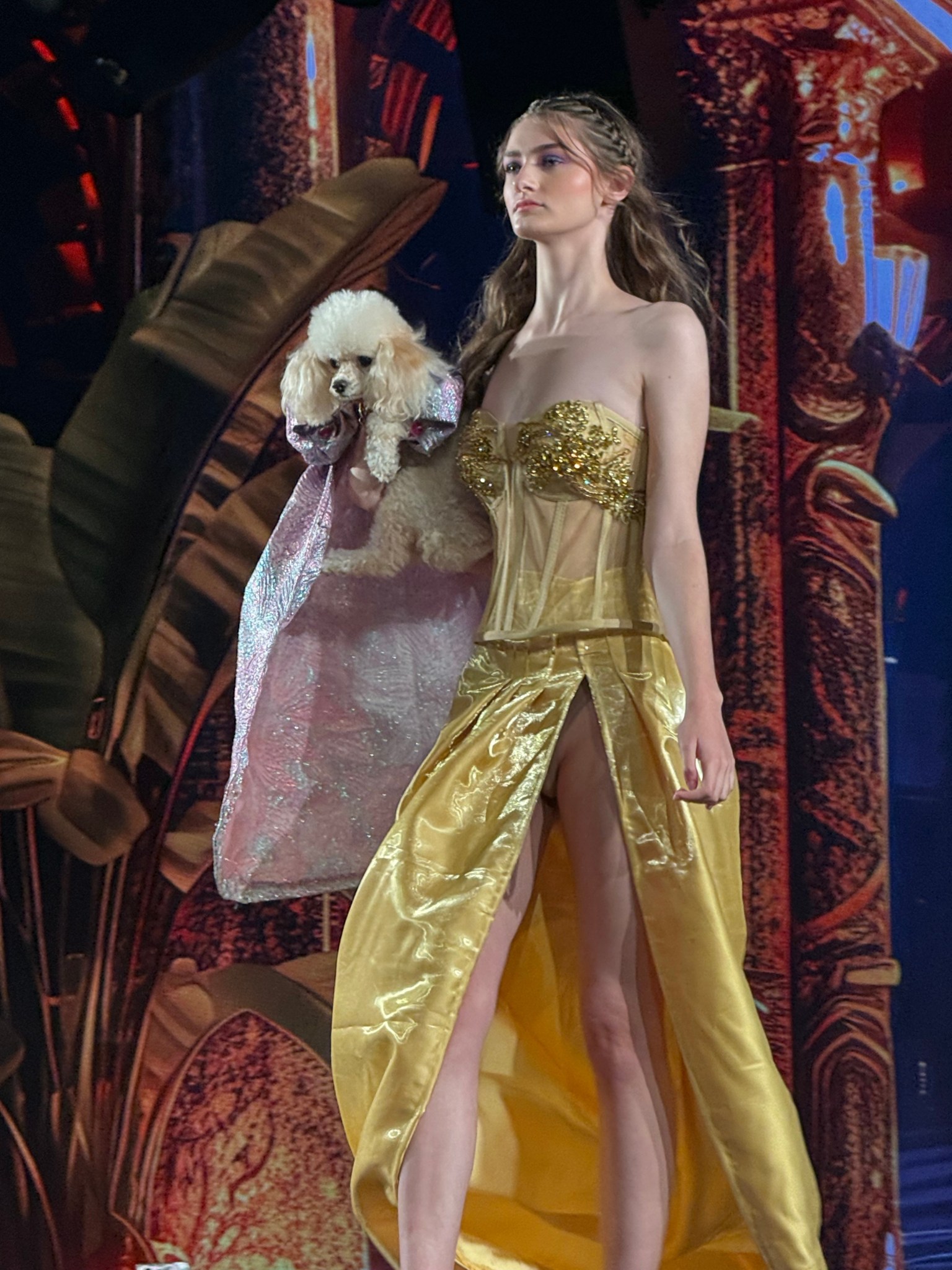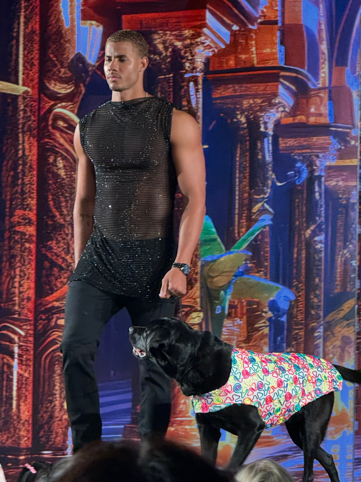 Anthony Rubio took to the stage of Sony Hall today here in New York City to catwalk his extraordinary canine couture gearing up for Spring/ Summer 2026. The packed house which the Runway 7 collective is responsible for got Anthony’s family of models to show off comparable and contrasting doggy attire with the models they took to the runway with.