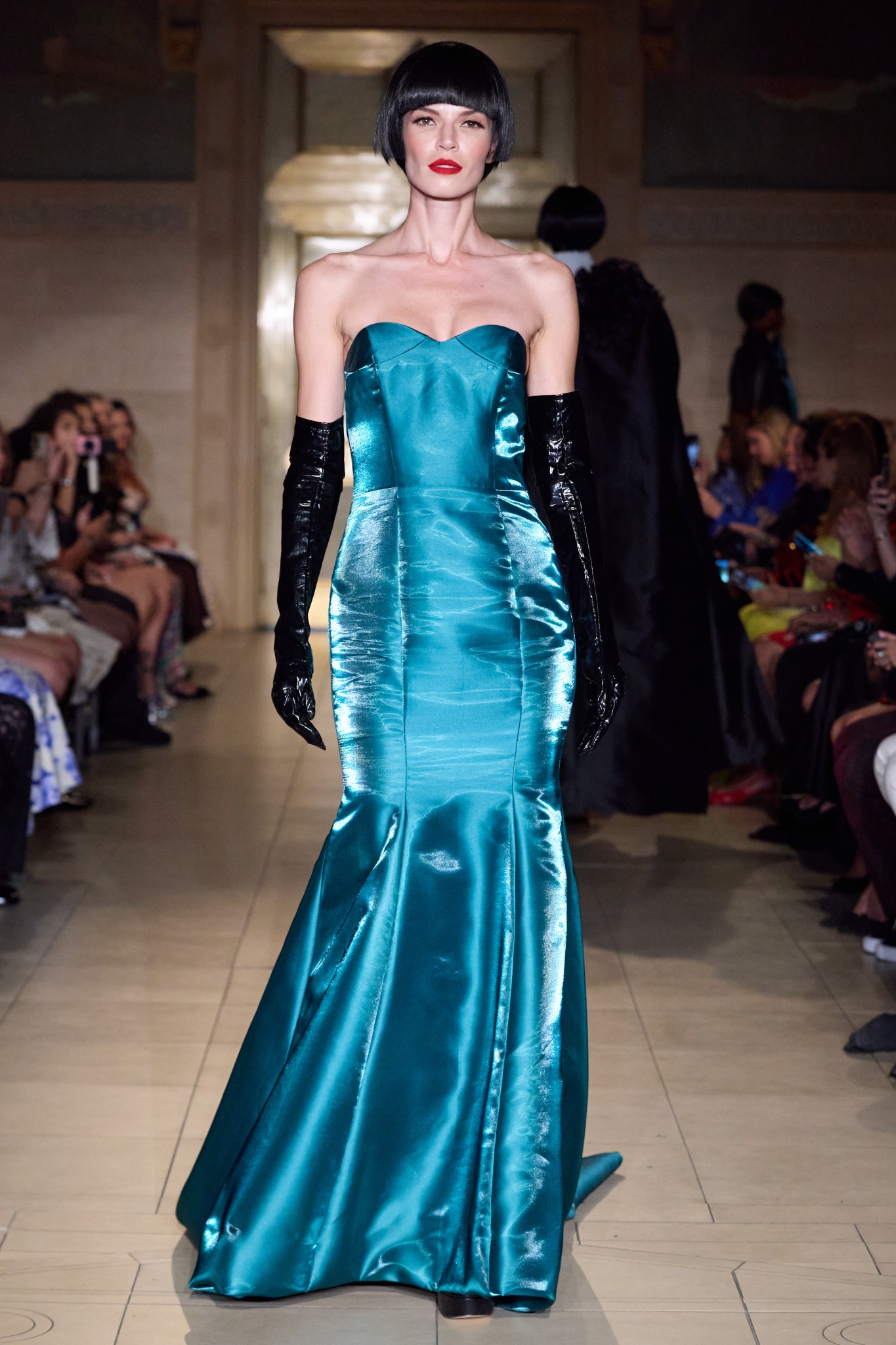 Drawing also on the opulence and grandeur of the Gilded Age, the designs reimagine the excess and elegance of that era for a modern world caught between technology and tradition. Silks, brocades, and master tailoring echo the ornamental richness of the late 19th century, while futuristic structures and a musical narrative thrust the garments firmly into the present and future.