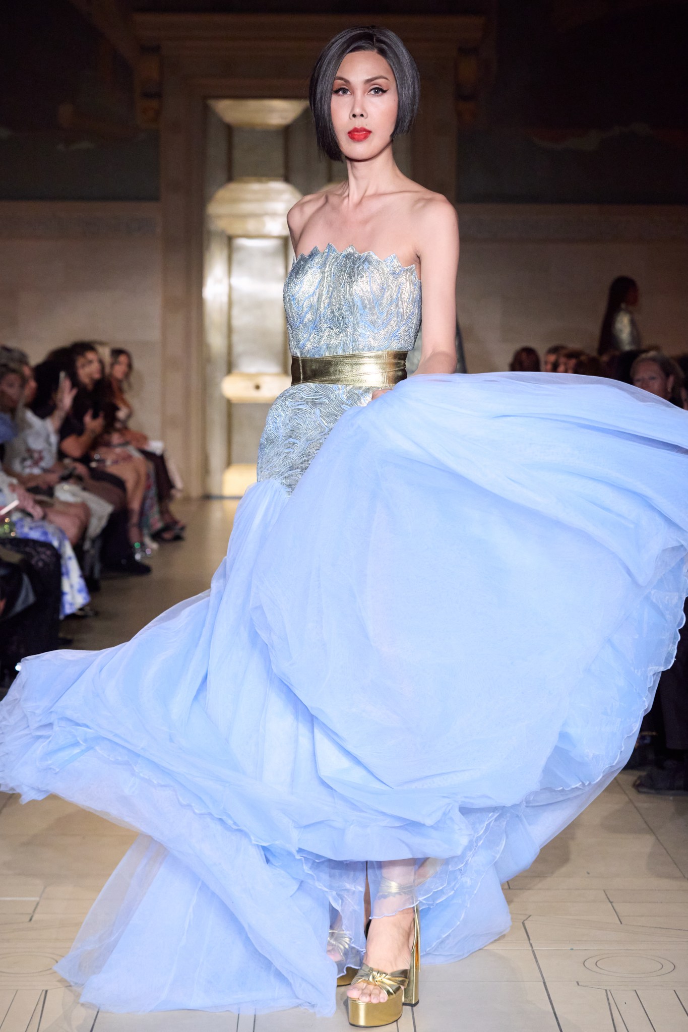 Act I – The Heart in support of CaringKind honored compassion and the resilience of caregivers facing the challenges of Alzheimer’s. Act II – Time explores precision and the relentless march of time through collaboration with King Seiko, the legendary Japanese watchmaker. Act – III Transformation celebrates reinvention, and beauty as resilience. With Wigs.com and iconic hair stylist Vivienne Mackinder, and the final chapter, Act IV – Legacy, draws inspiration from the grandeur of the Gilded Age in collaboration with SohoMuse.