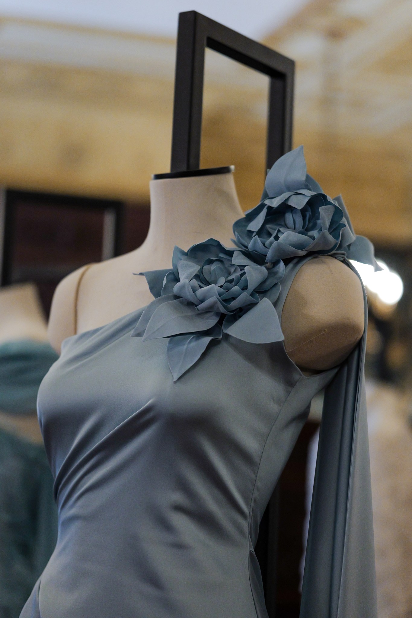 Dennis Basso unveiled his Spring/Summer 2026 collection inside the Columbus Citizens Foundation Townhouse, 8 East 69th Street, presented as an exhibition rather than a runway. Gowns and evening ensembles were displayed throughout the ornate rooms, allowing guests to move closely among the designs and see details up front.