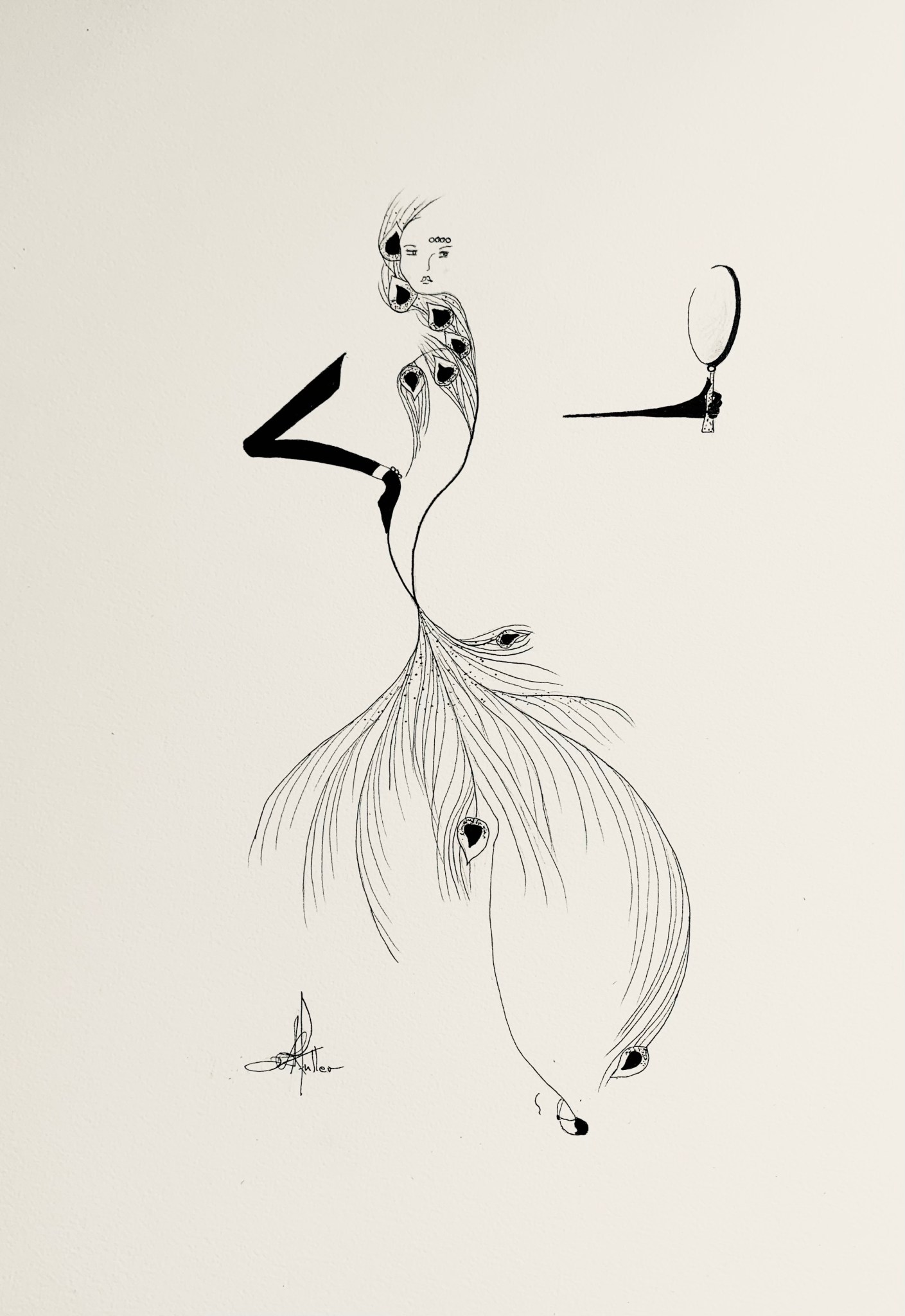 Look yourself in the mirror and you will see the individual in front of you, you hardly look away at your own vanity. However, you wonder what could be behind that backward image which you see everyday. S.L. takes us through the India ink that is “Iman” as this beautiful woman holds up her own vanity but can’t help it to look away. “Iman” certainly questions what metaphysics is behind the reason why she is on Earth before dealing with the uncomfortable approach.