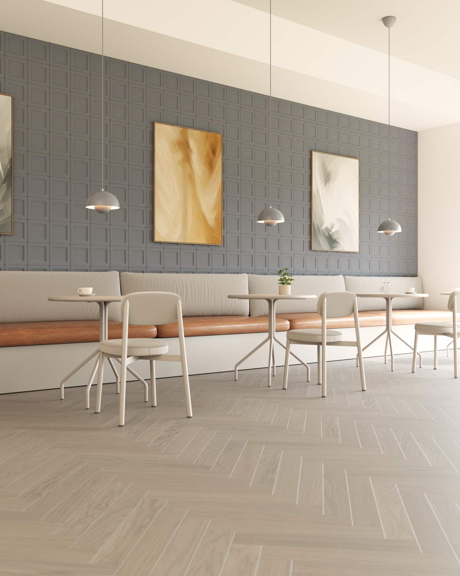 Bjelin’s brand-new wood-based Nadura Tiles will be on display, together with the latest Woodura Planks 3.0 and Woodura Herringbone 2.0 – a modern and more durable take on a classic that’s ideal for commercial settings.