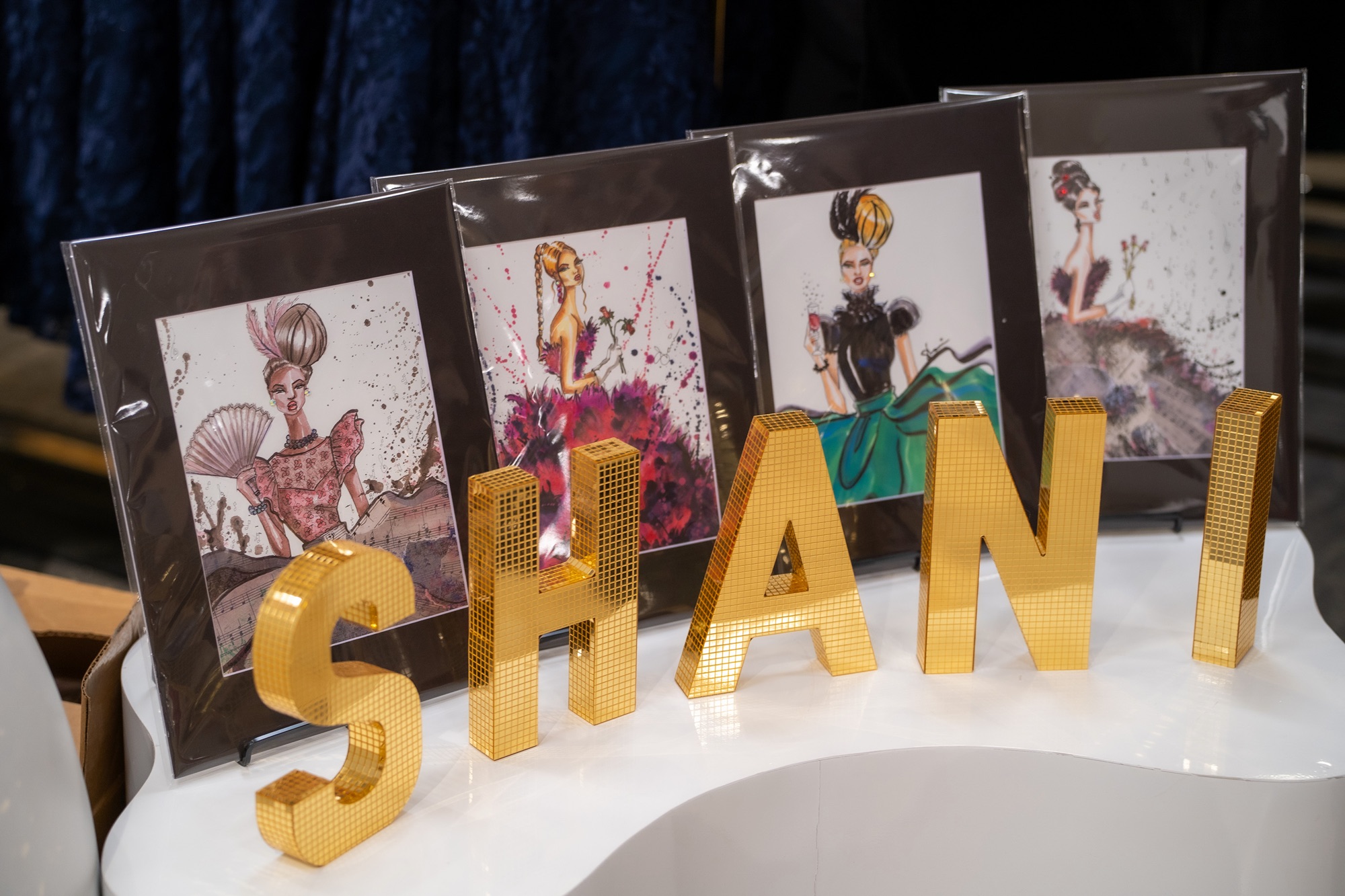 Shani Grosz also brought her art talent to Macy’s Herald Square with an uplifting display of her paintings that are better than 3D itself due to Shani’s vision and jeweled use on canvas. Nearly a year ago, DANIEL PLUS LAUREN paid a visit to Shani Grosz’s showroom in midtown Manhattan where DPL witnessed how next generation Shani’s artwork was complementing Shani’s fashion. Overall, Shani Grosz X Macy’s was a delivery of Shani’s showroom for an immersive experience involving gowns, models, art, attendees, and businesses to enhance the experience.