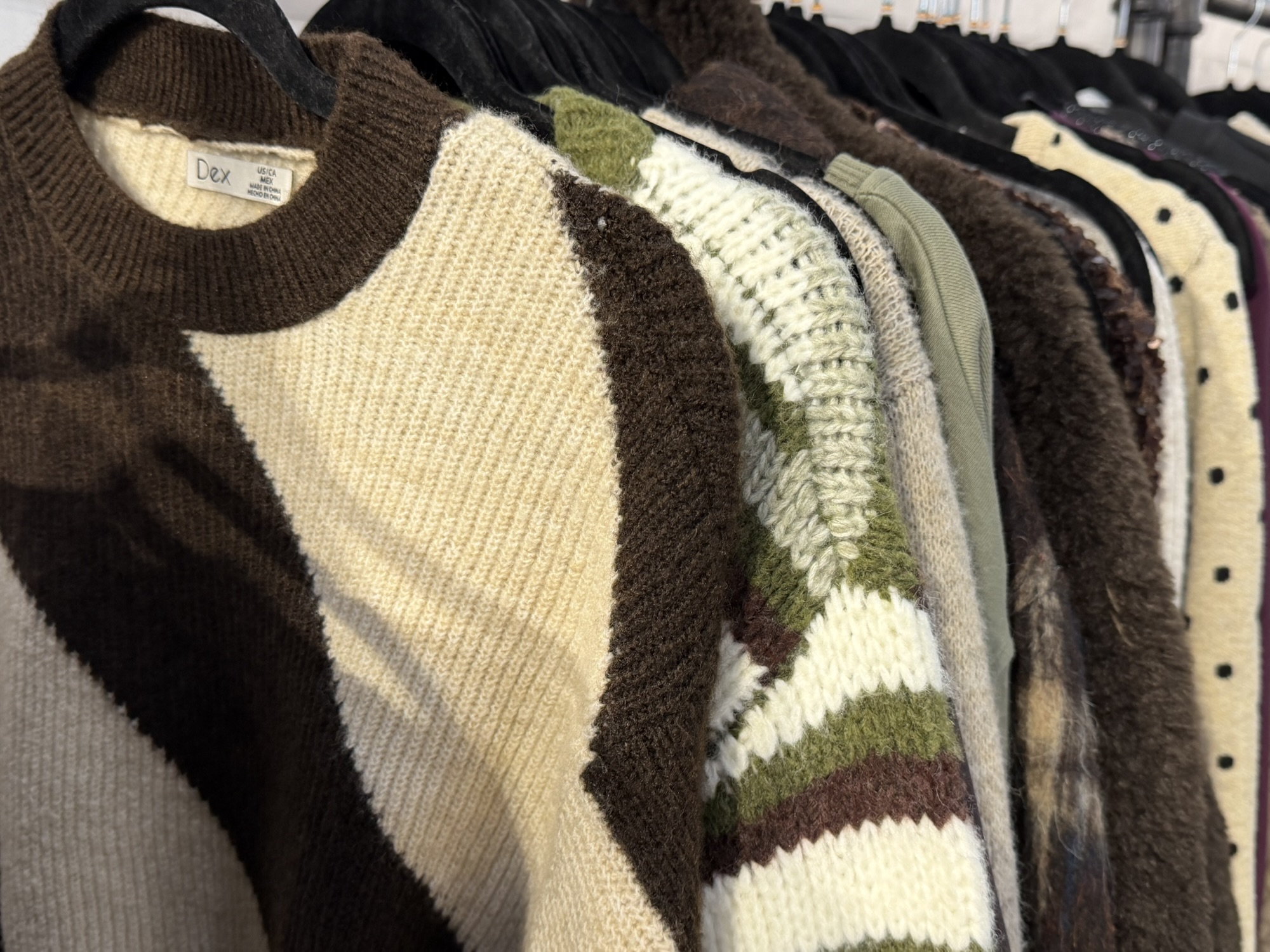 DEX is an overarching brand showing off more everyday casual wear which is fun, and full of trendy, comfortable everyday clothing. DEX consists of semi-chunky, patterned, and faux-fur sweaters made for everyday. Metallics, leopard prints, mustard yellow, and red wine colors also make up the DEX DNA consisting of light and heavy days. You can find DEX carrying an array of tops and bottoms holding uphill chic.