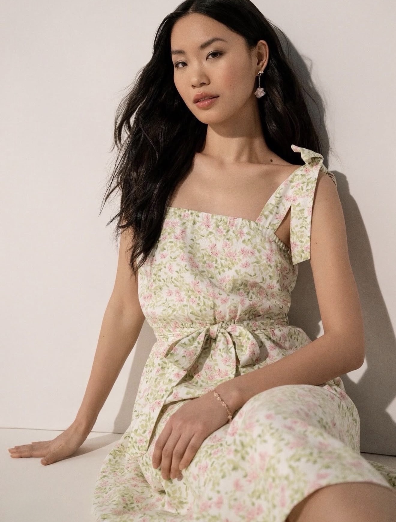 It may be happening slowly, and in the most brutally honest way possible, but Spring here in New York City will soon arrive. We may get excited by the 15 day forecast of temps in the upper 70’s only to be struck down by temps adjusting down. For all we know is that the snow-covered paths you couldn’t run on for over a month are now runnable again, you definitely want your boots on the ground to get some exercise in. Because Lauren Conrad gave NYC and the nation a Spring Awakening today with her LC Lauren Conrad floral print Tie-Strap Tea-Length Dress.