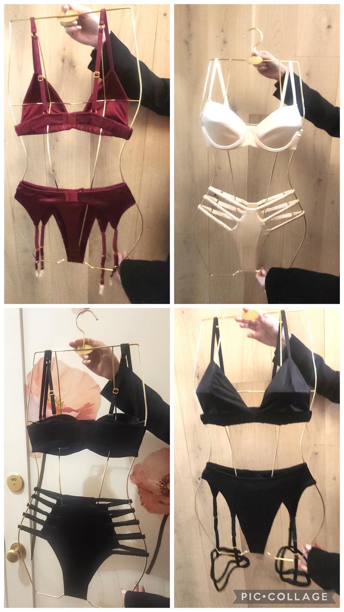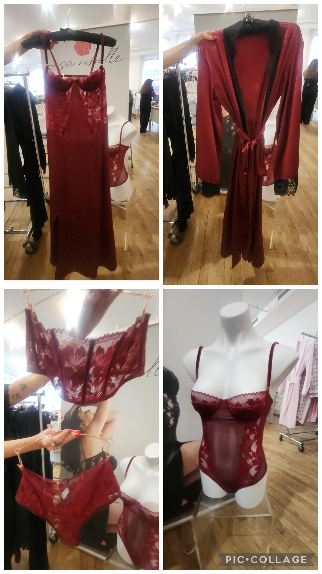 The bottom two photos are a lace and mesh bodysuit with a push up balconette bra that is the same bra used in the slip dress. The bottom left photo is a boned bra with matching lace briefs. The designer is Smantha Rose and on her website, she has many more pretty items. Prices $70.00 – $315.00. Sizes XS -XL www.roseribella.com