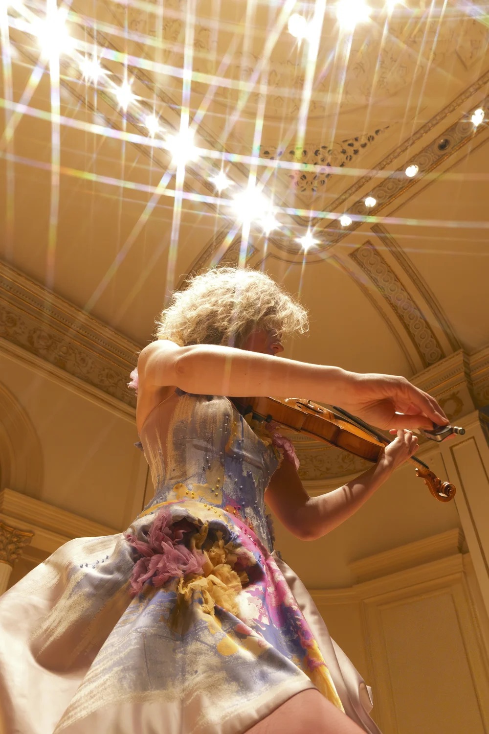 The Season Finale marked Salon Aux Chandelles’ debut as a platform where music and fashion converge at the highest level. Alexandra Andreevatook the Carnegie Hall stage in two bespoke couture gowns by New York designer Alex Teih — each a visual declaration as bold as the music itself. Vartan Mailiantz performed in a suit by distinguished American menswear house Ike Behar. Together, the collaboration announced something the classical world rarely sees: a concert conceived as a total aesthetic experience, where what is worn is as intentional as what is played.